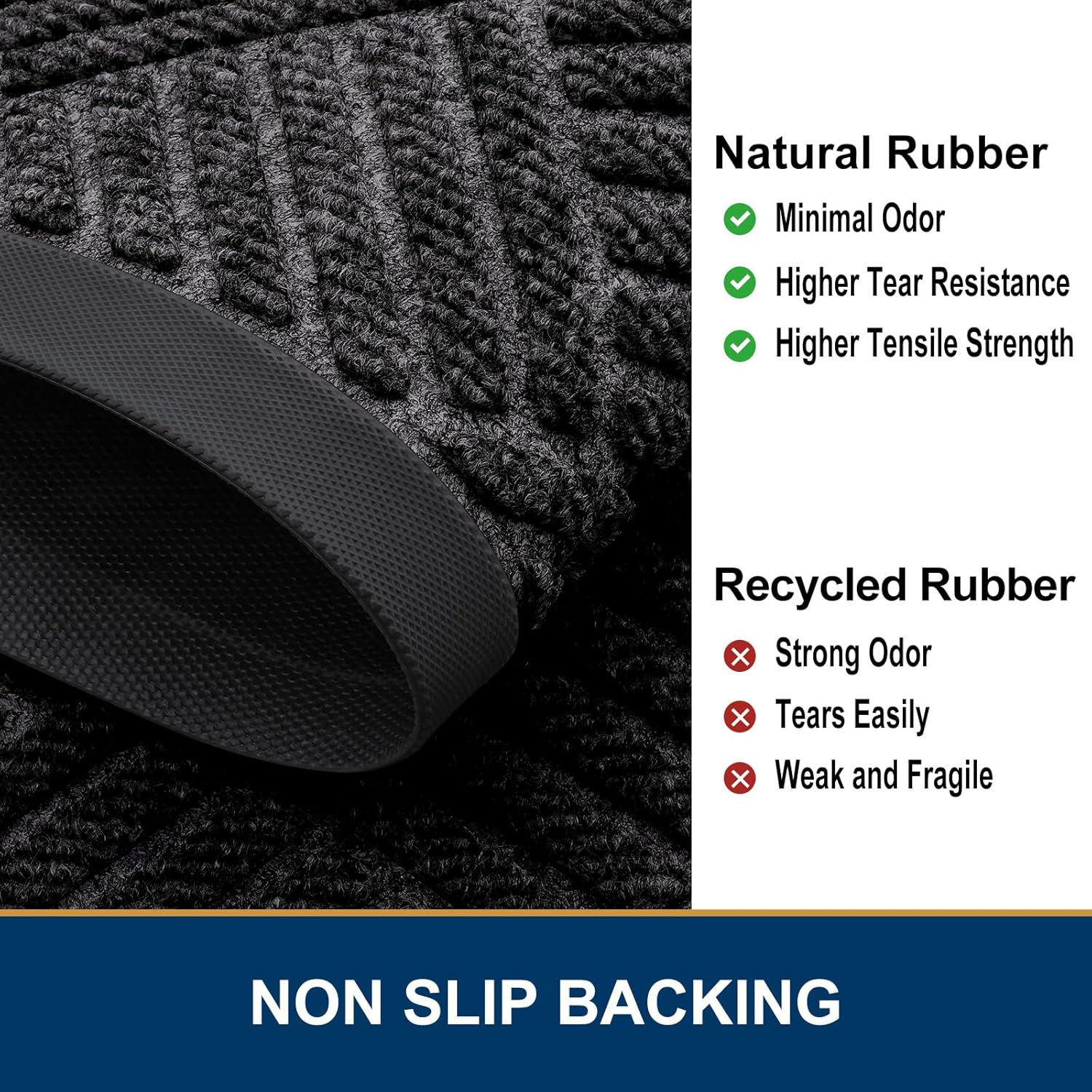 - Sturdy & Non-Faded: Good quality natural rubber makes the door mat long-lasting. Excellent tensile strength and not easy to tear withstand all weather and seasonal changes. Odorless and fastness to fading makes the process of reuse more pleasant