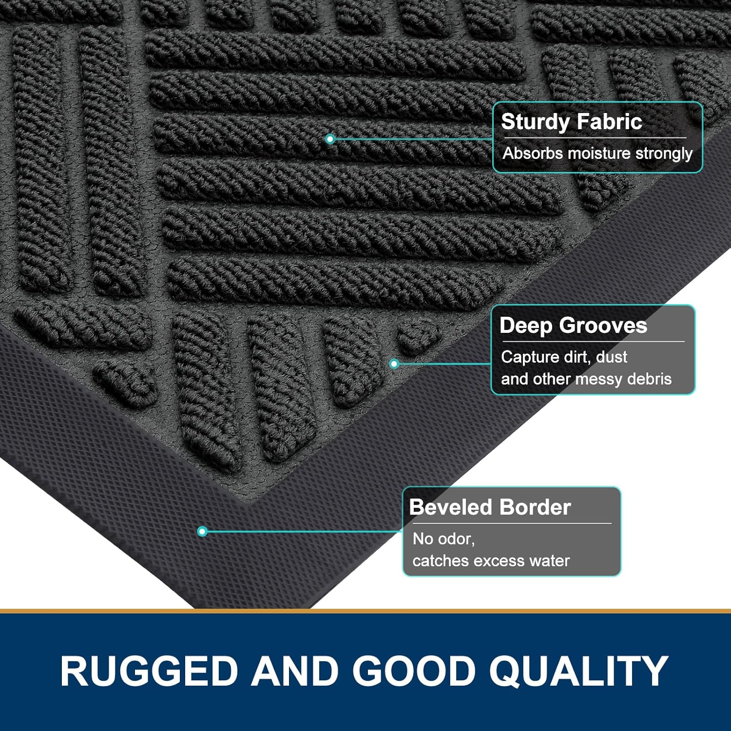 - Capture Dirt and Moisture: The surface of the Smiry door mat is crafted from woven polyester fabric. The deep grooves can effectively trap the dust, gravel, mud, sand and other clutter. The sturdy beveled rubber edge will not accumulate water. Even rainy, snowy or muddy weather will keep your home dry and clean