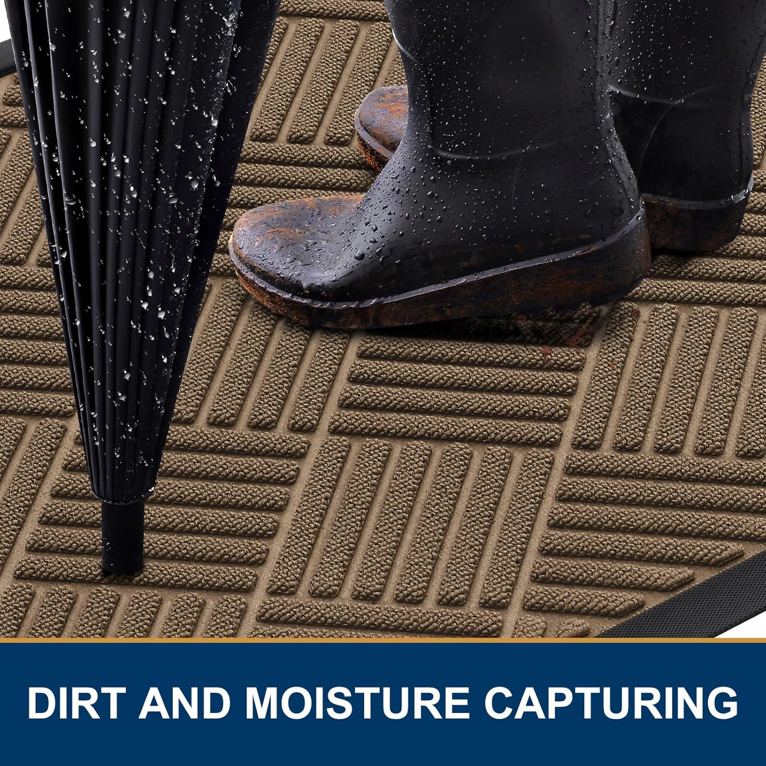 - Capture Dirt and Moisture: The surface of the Smiry door mat is crafted from woven polyester fabric. The deep grooves can effectively trap the dust, gravel, mud, sand and other clutter. The sturdy beveled rubber edge will not accumulate water. Even rainy, snowy or muddy weather will keep your home dry and clean