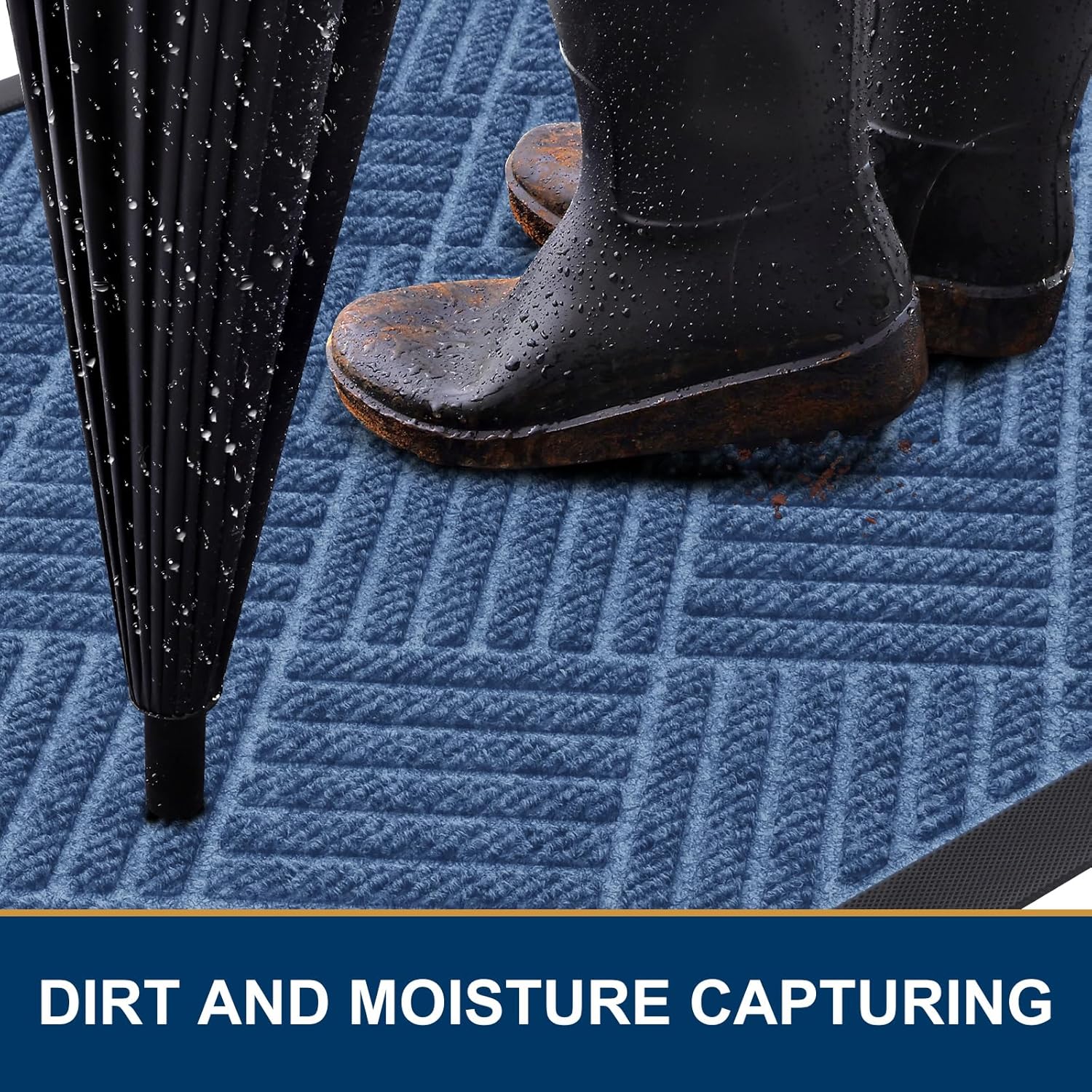 Smiry Front Door Mat Outside Entrance, Heavy Duty Outdoor Indoor Natural Rubber Doormat, Non Slip, Trap Dirt and Moisture, Easy Clean, Low Profile Patio Porch Entryway Mat, 35x23, Blue