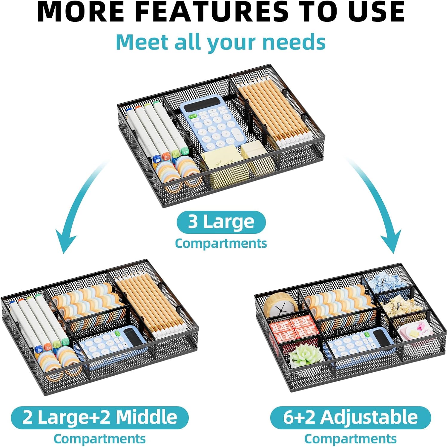 - 【2 Pack Drawer Organizer】: Marbrasse discovered the customer's demand for drawers and quickly launched the 2-pack mesh drawer organizer! This 2-pack drawer organizer gives you more space to store your supplies, which is specialized to comply with your desk, such a perfect supplies desk organizer must be the best choice for your office accessories