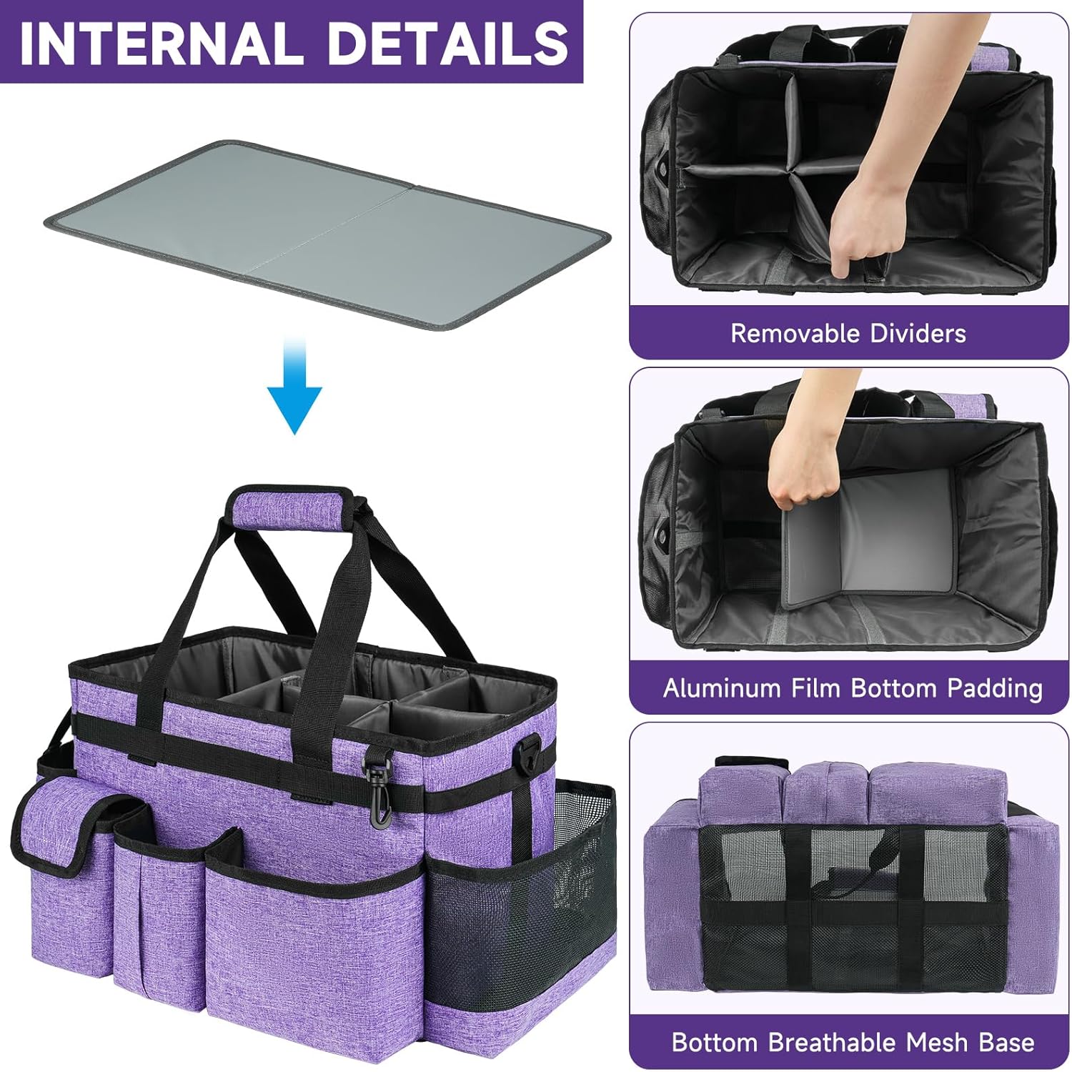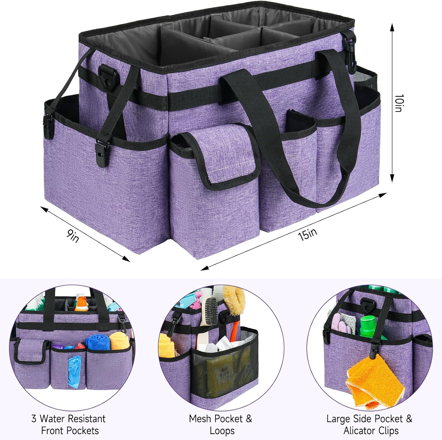 Cleaning Caddy Bag,Large Cleaning Supplies Organizer with Handle for Housekeepers,Purple