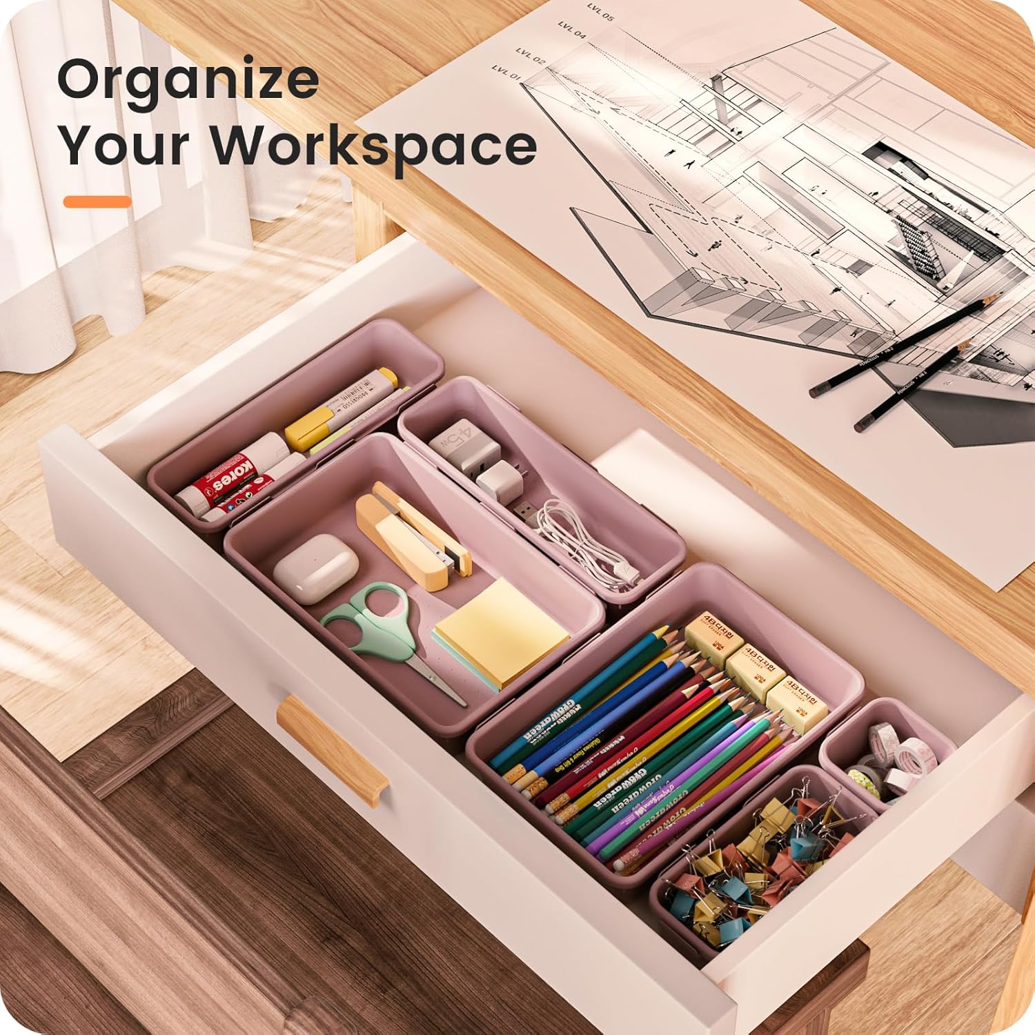 • 【Easy to Clean】 ---- Our desk drawer storage bins are easy to wipe with a damp cloth and are perfect for keeping everything in its place. Convenient for use in your daily life, it makes everything look beautiful and better organized.