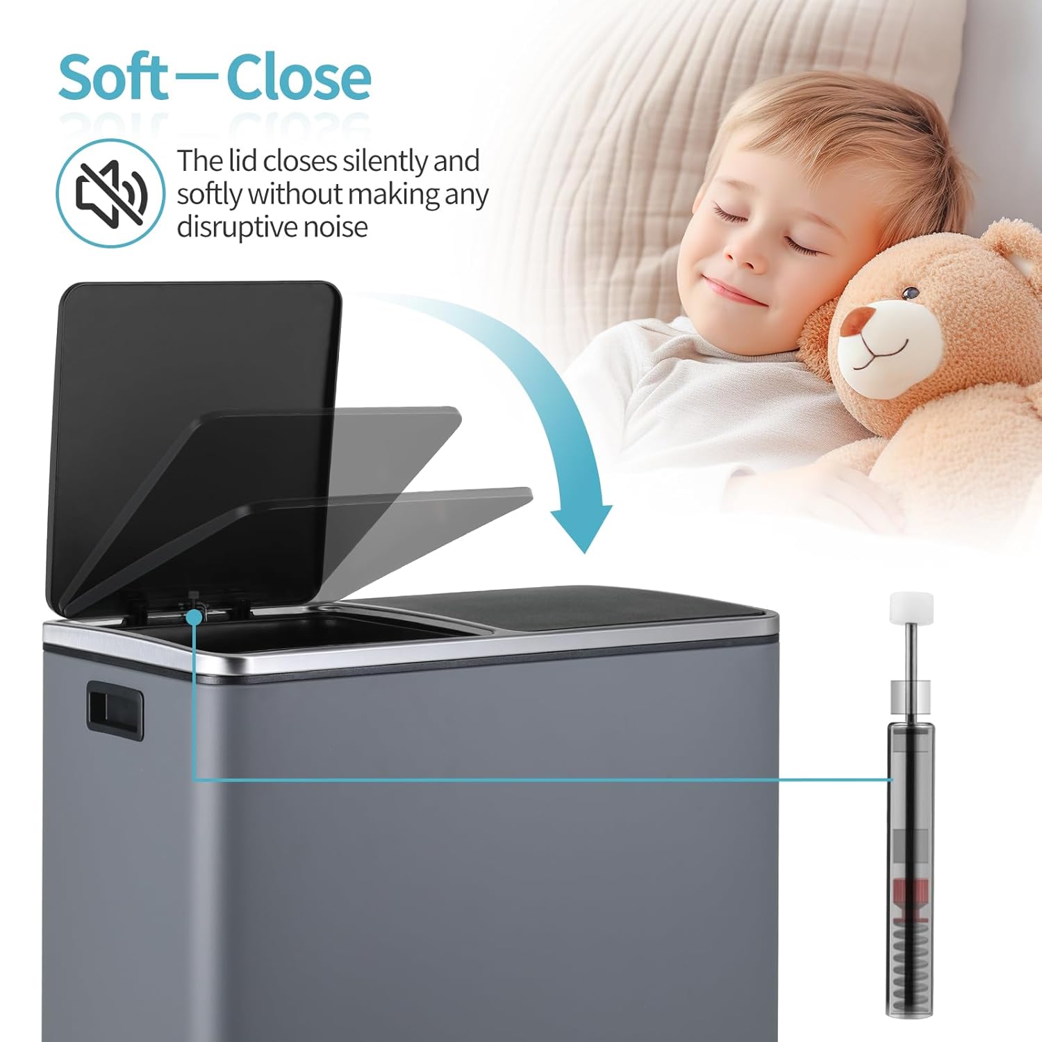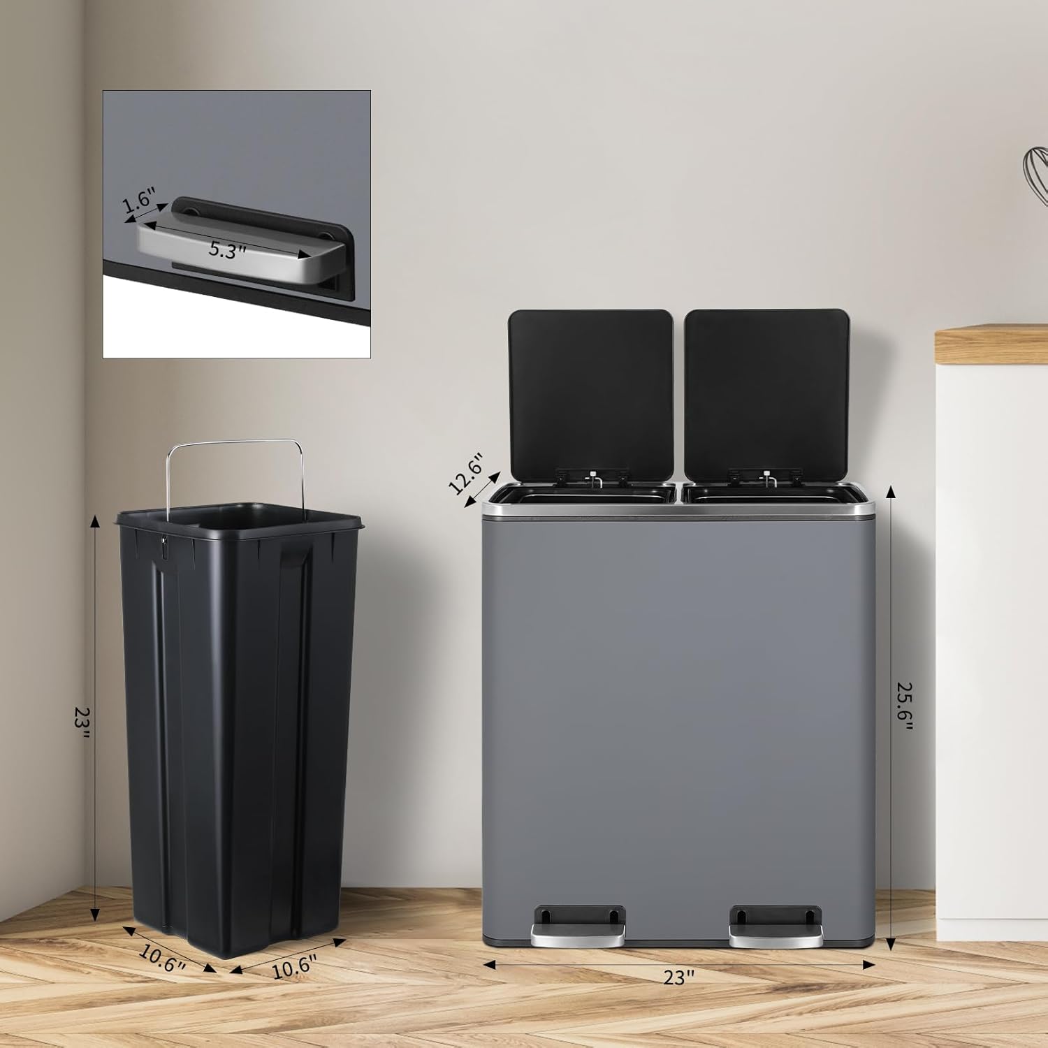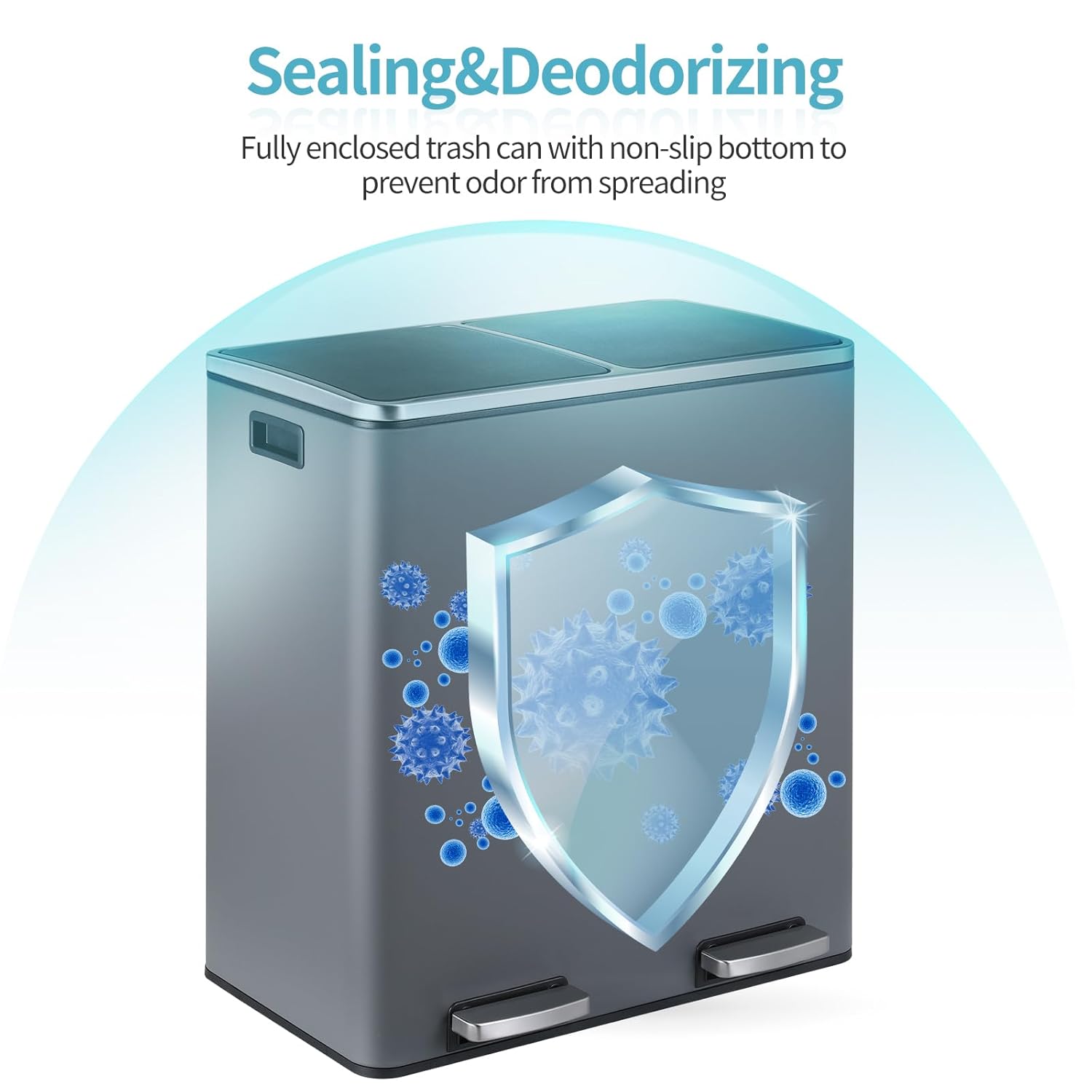 • 2×8-Gallon Compartments: 16-gallon step trash can has two compartments, combining garbage and recycling. Completely separated dual garbage and recycling can also avoid the smell of garbage. 2 removable inner buckets increase convenience