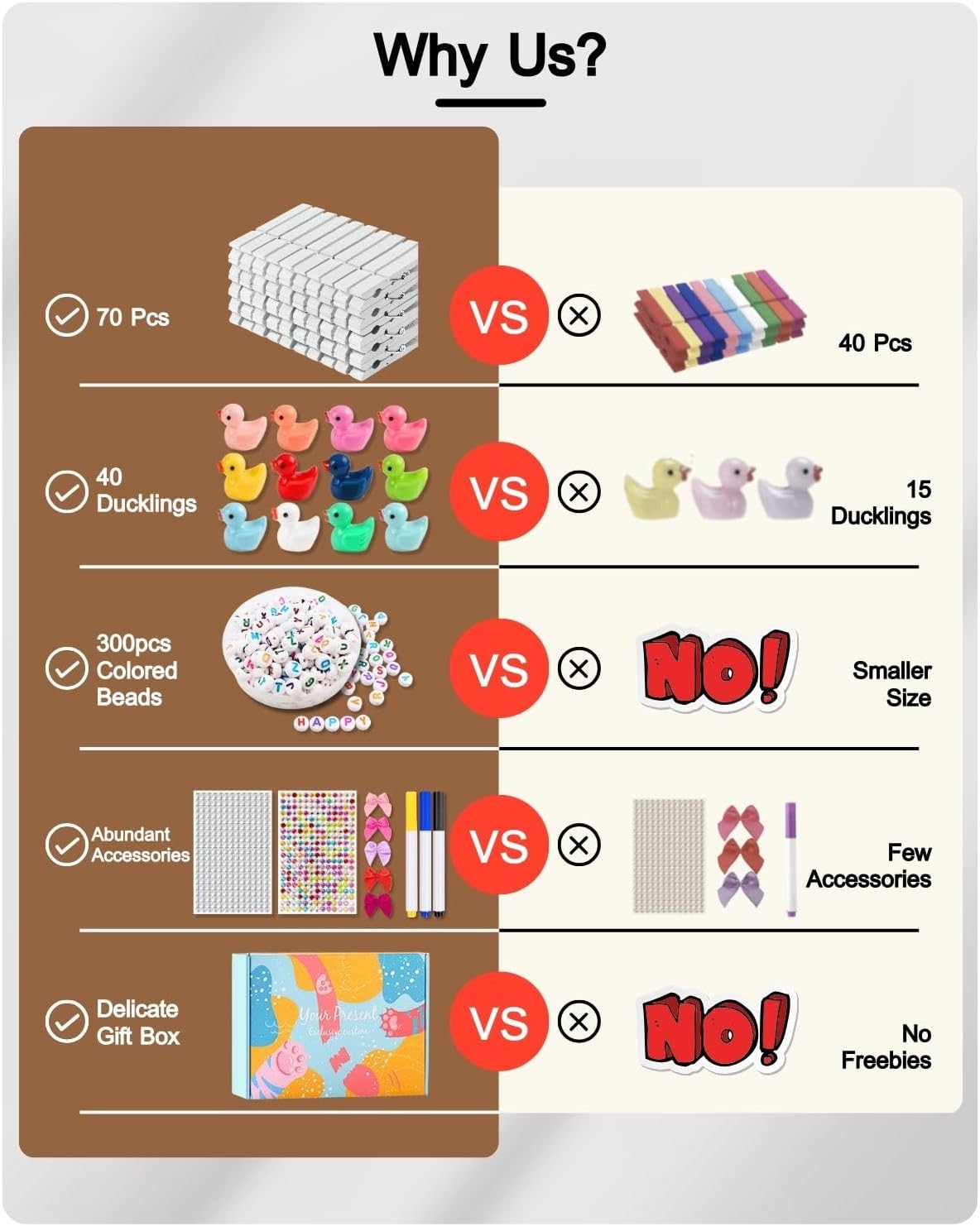 • 🎯 Wide Usage – From Sidelines to Classrooms: 🏈Cheer Squads: Clip ducks to pom-poms, spell team mottos with beads. 🖼️ Home Décor: Hang photos, organize craft supplies, or decorate holiday wreaths. 🎪 Party Pros: Create custom banners, seal gift bags, or design themed centerpieces. 👩‍🏫 Classrooms: Display student artwork, teach color sorting, or craft friendship bracelets.