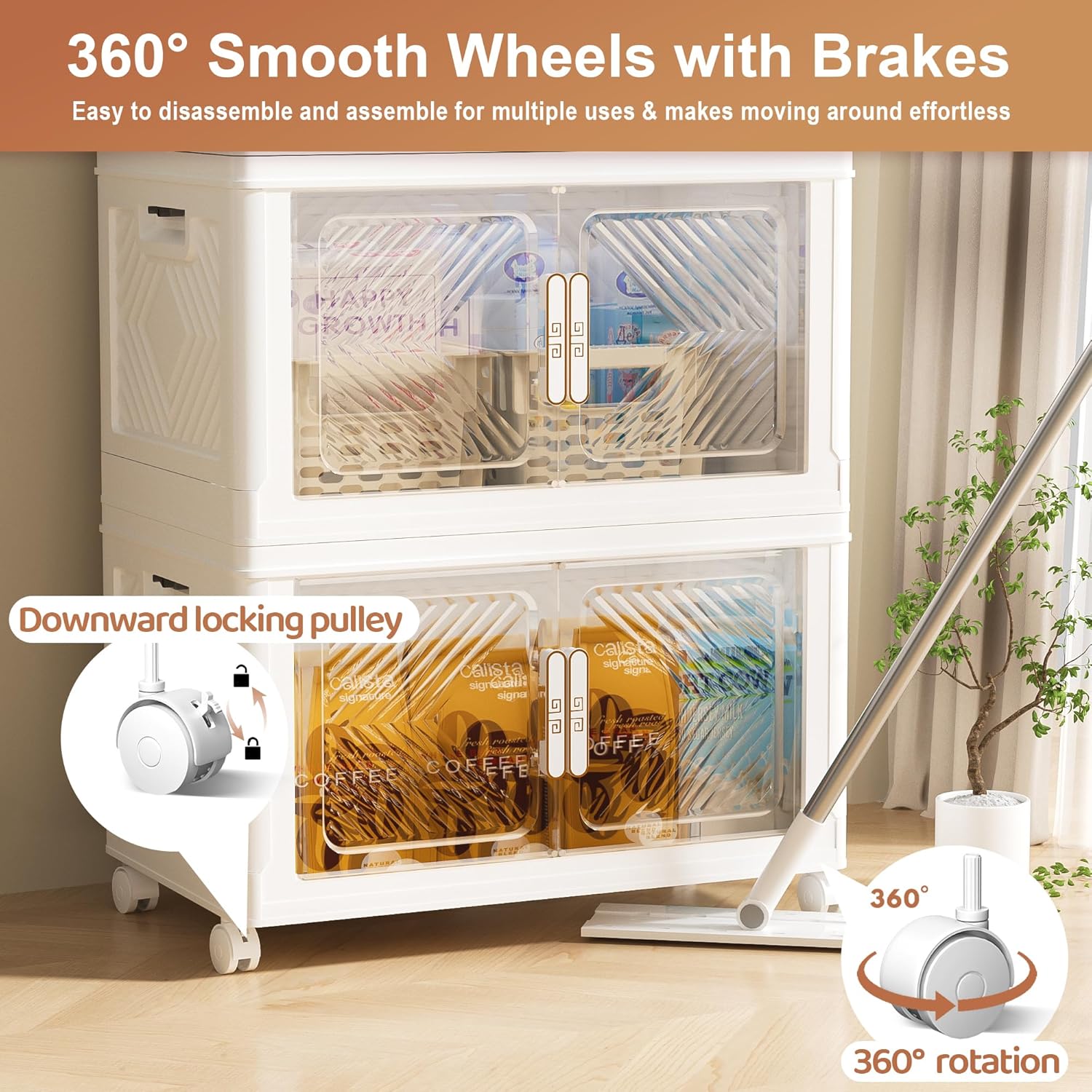 Storage Bins with Lid 76QT, Stackable Storage Containers with Wheels and Magnetic Doors, Plastic Clothes Closet Organizers and Storage Box for Pantry, Home and Office (5 Pack)