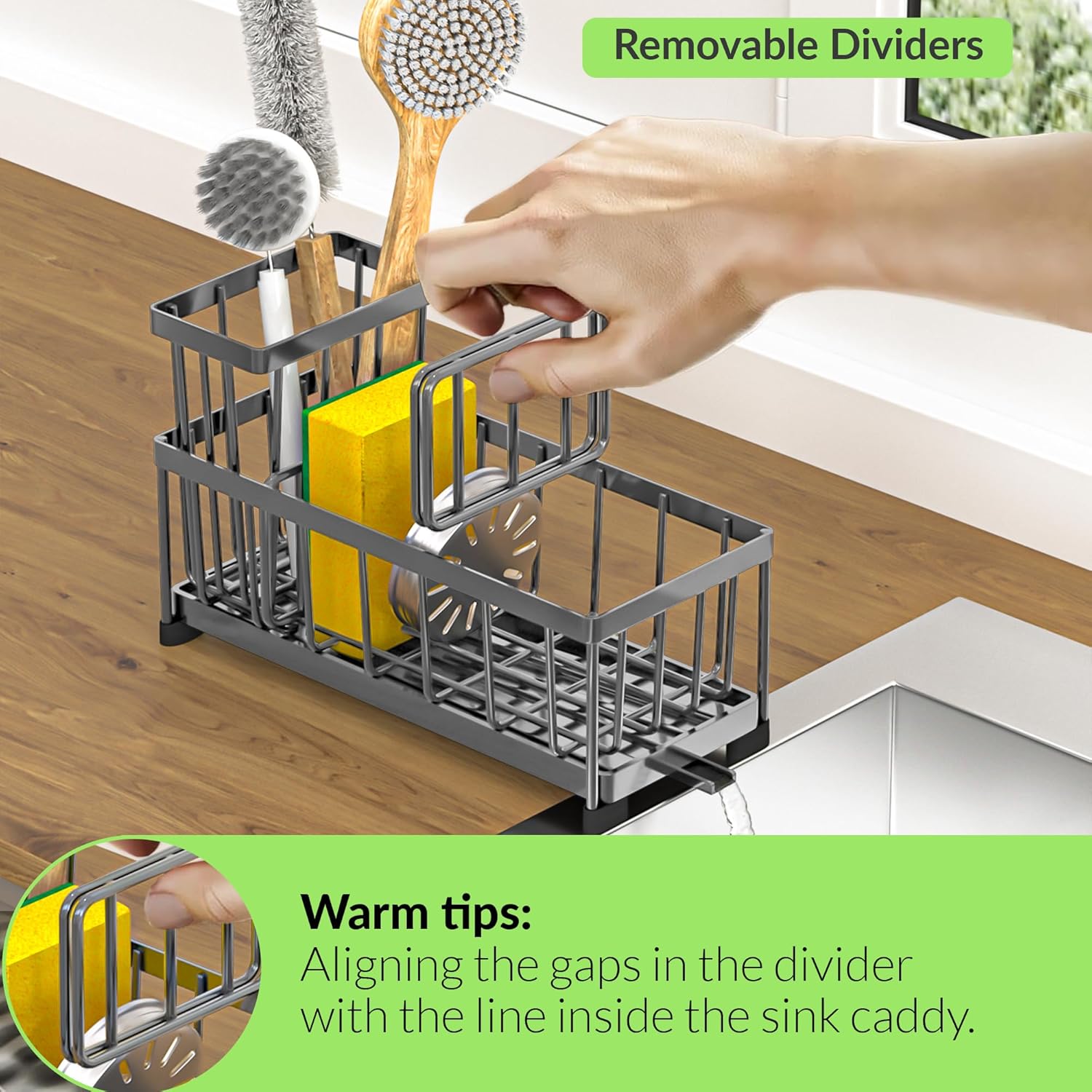 • 【 Stainless Steel Material】Made from durable 304 stainless steel, Our Sink Caddy is rust-proof and built to last. Its anti-rust coating can withstand constant water exposure while maintaining its sleek—ideal sponge holder for kitchen sink.