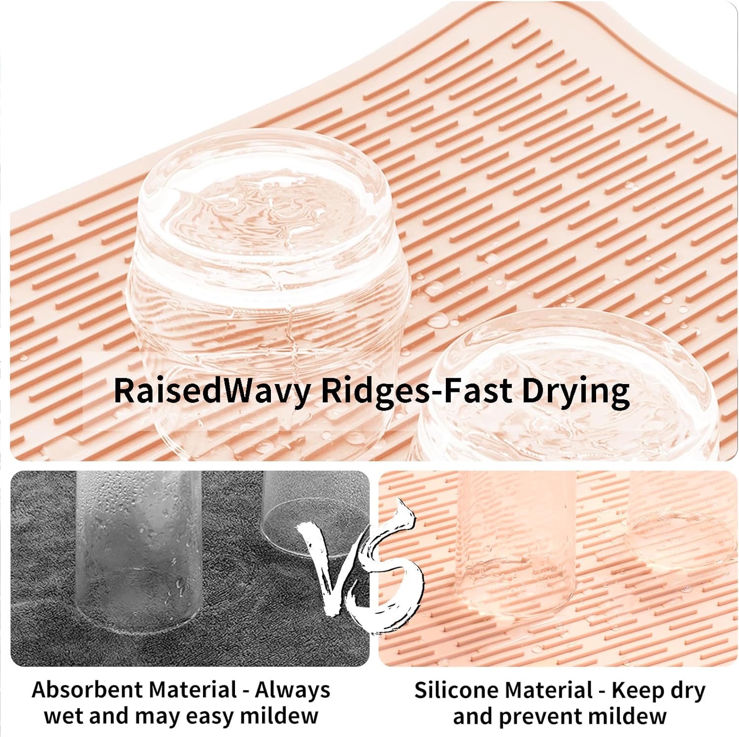 ZLR Silicone Dish Drying Mat for Kitchen Counter, Eco-Friendly Fast Dry Dish Mat, Easy Clean Multi Usage Drying Matt, Heat Resistant Trivet, 16" x 18" XL, Peach Pink
