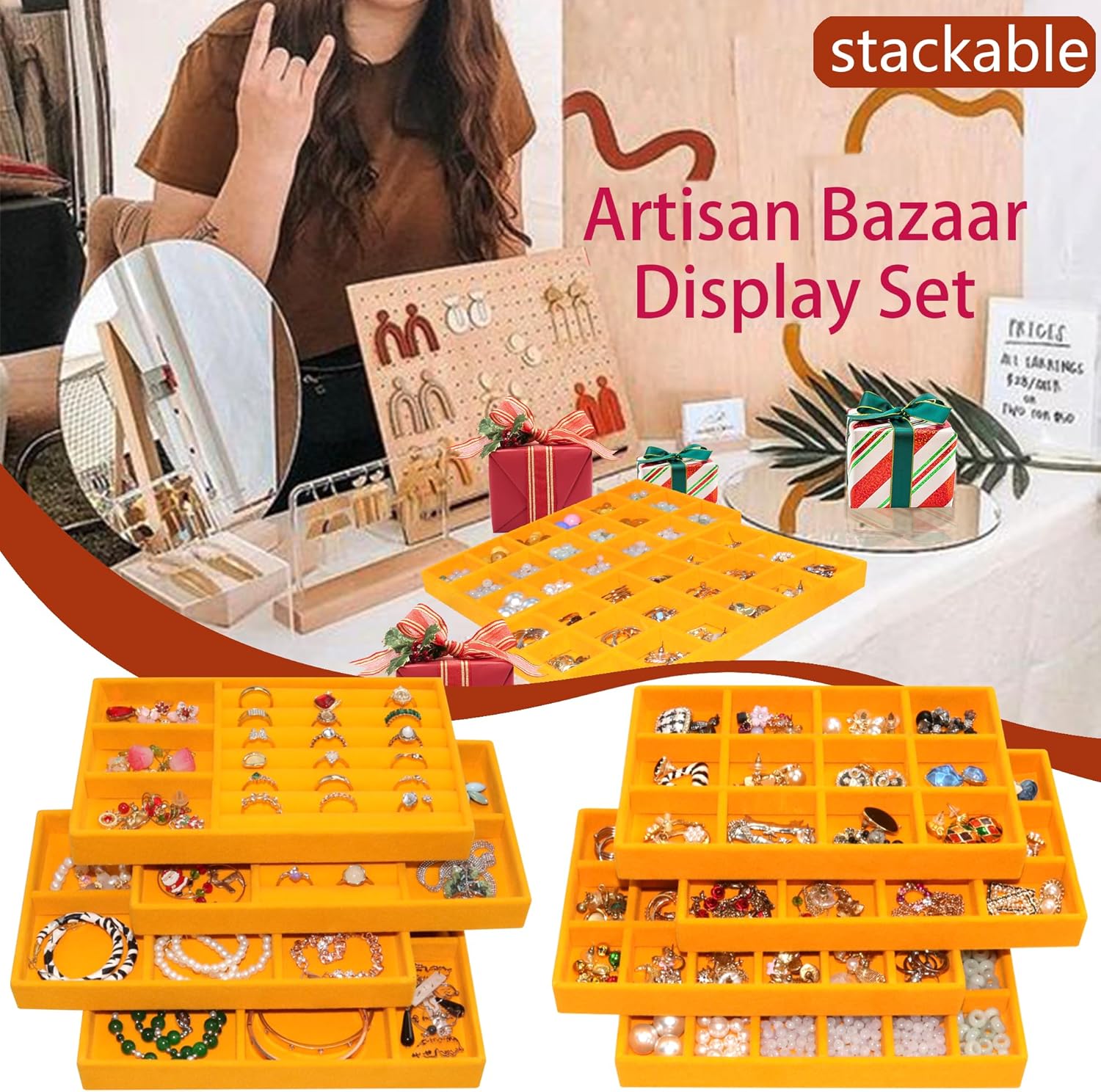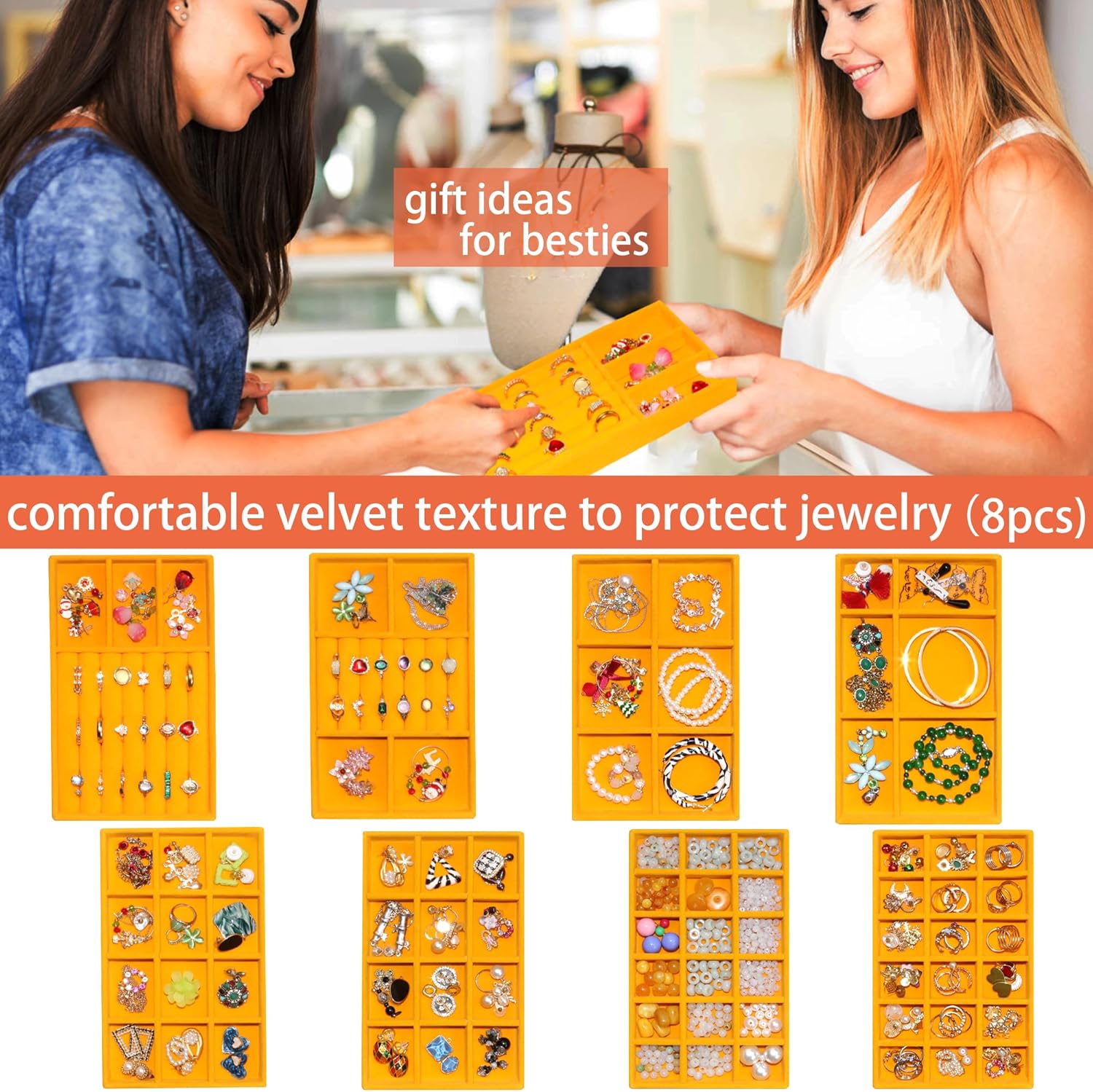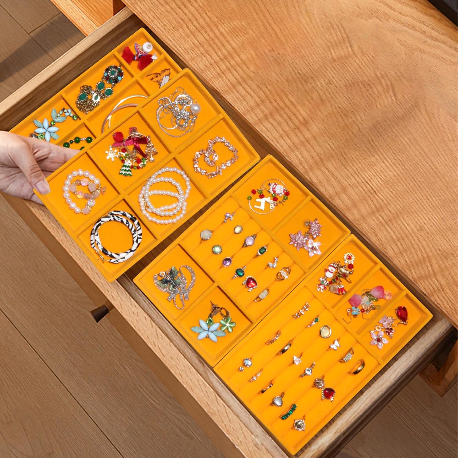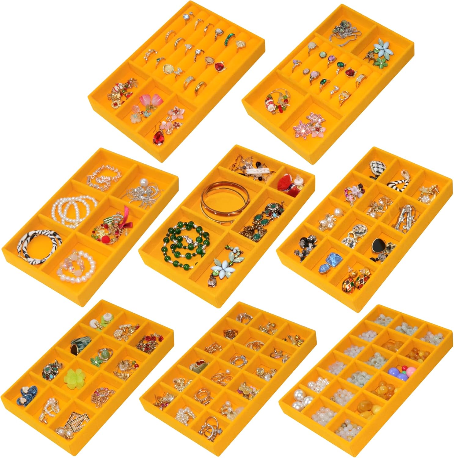 Set of 8 Stackable Velvet Jewelry Trays Organizer Jewelry Display Storage Box Dresser Drawer Organizer for Earring Necklace Bracelet Ring Accessary
