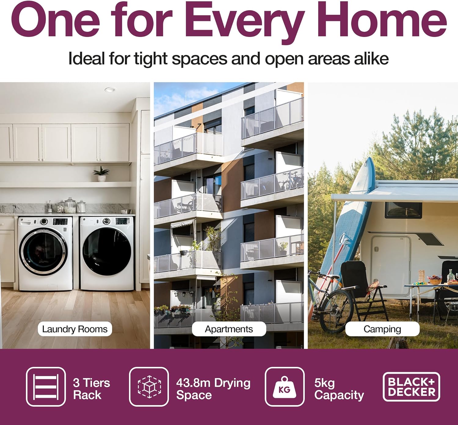 • Ample Drying Space with 3 Tiers: Equipped with 6 rods and 2 hooks, providing 43.8m of drying space while maintaining a slim profile for small spaces.