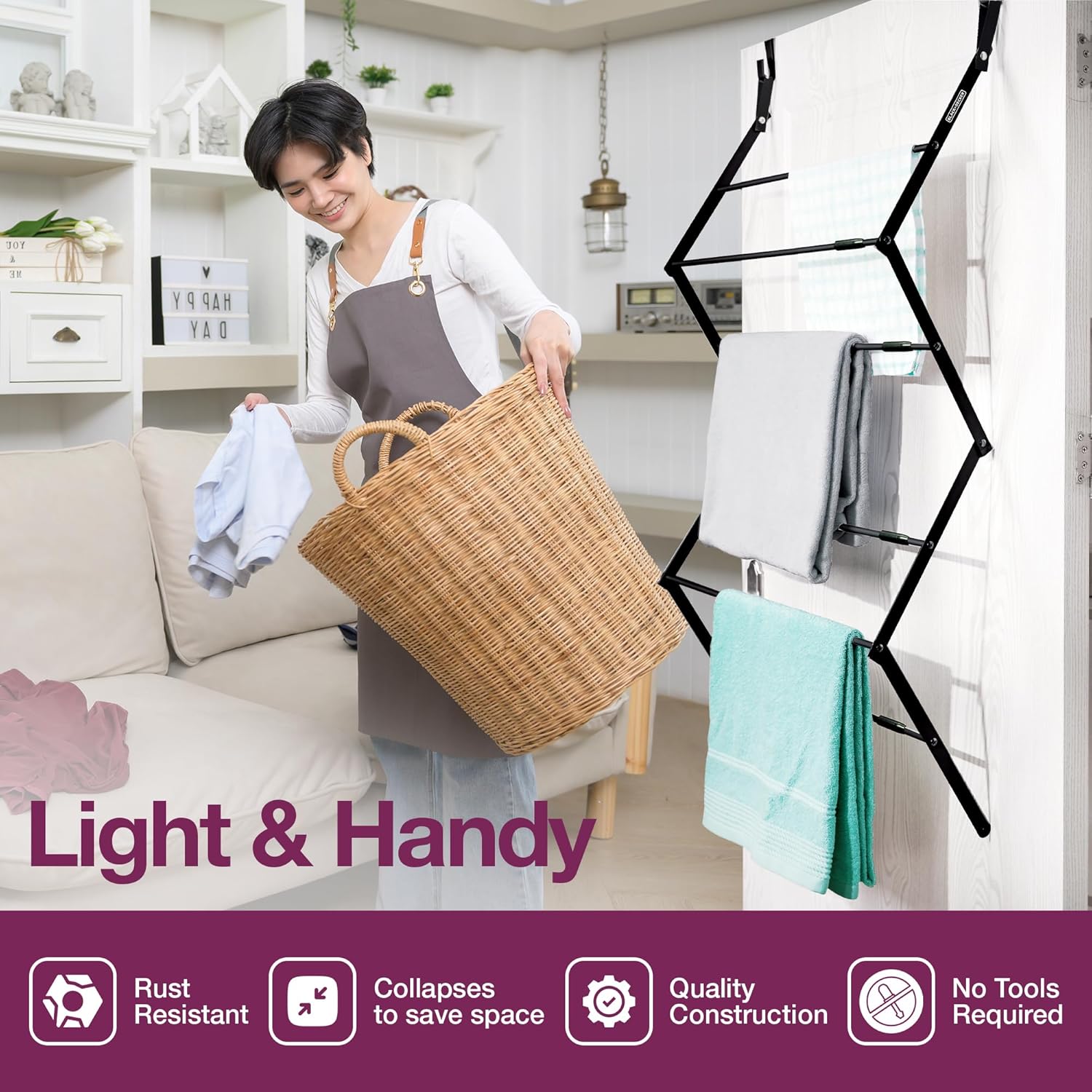 • Expandable & Space-Saving Design: Features a compact, over-the-door design that expands up to 24 inches and folds down to just 3.5 inches for easy storage.