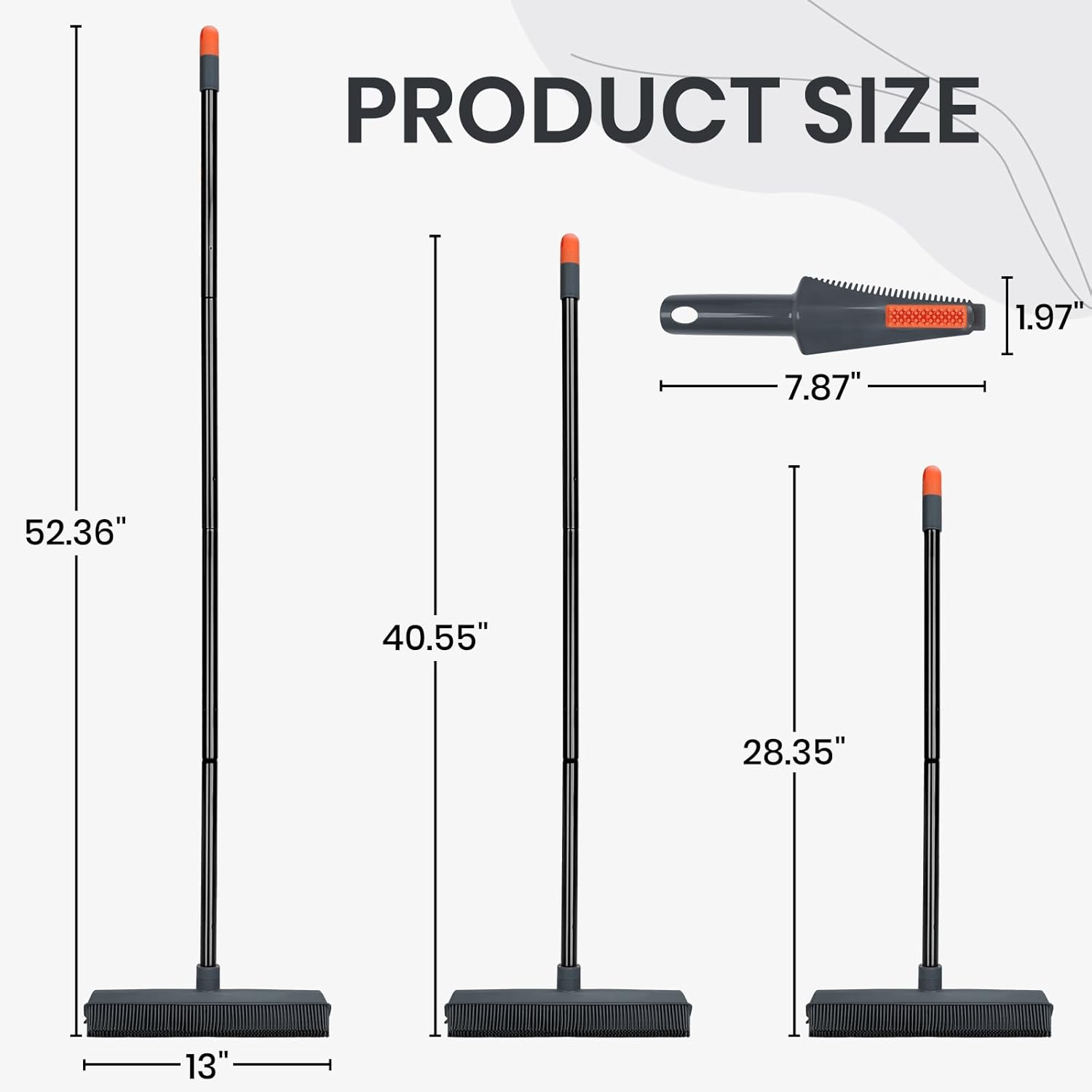 • 【2 in 1 Pet Hair Removal Broom】 Comes with rubber broom with built in squeegee, microfiber cloth, and cleaning brush. Carpet brush effectively get the stubborn hair out the rug, microfiber cloth wipe the floor, and the cleaning brush to remove hair and debris from the rubber bristles. This rubber broom set offer multiple functions in one tool, a must have for any home.
