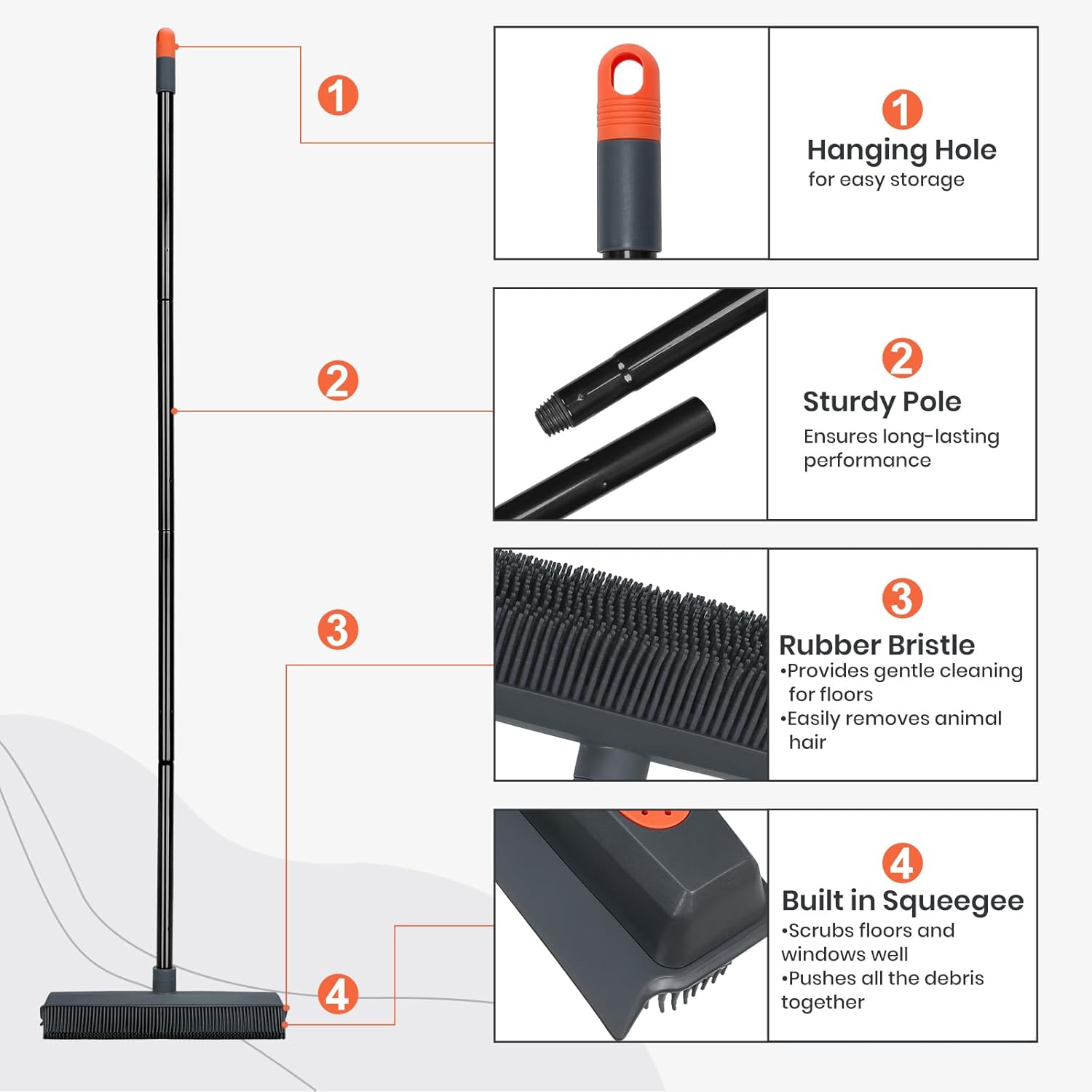 MAVRIZ Rubber Broom Carpet Rake for Pet Hair Removal, Pet Hair Broom for Hardwood Floor, Fur Remover with Squeegee