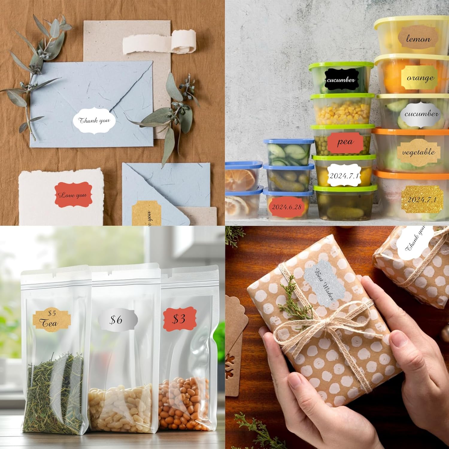 • Just need to peel off the sticker, write words and stick them where you want. With different color paper element, these sticker labels can not only be applied as Christmas gift tags, but also for wedding, birthday, mailing labels, name tags, etc.