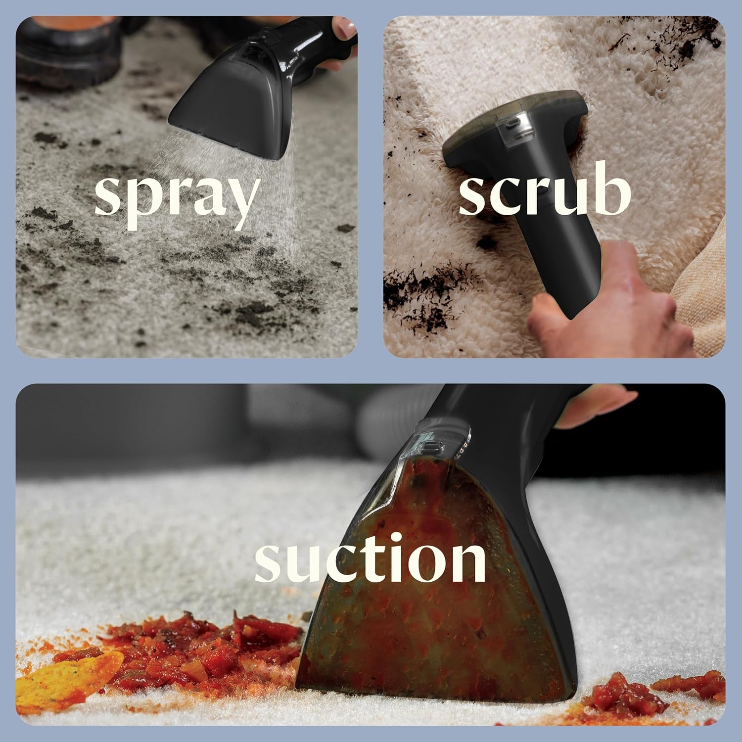 • CLEANS MORE THAN CARPET: Spray, scrub, and suction to remove embedded dirt and stains from upholstery, car interiors, pet beds, and more.