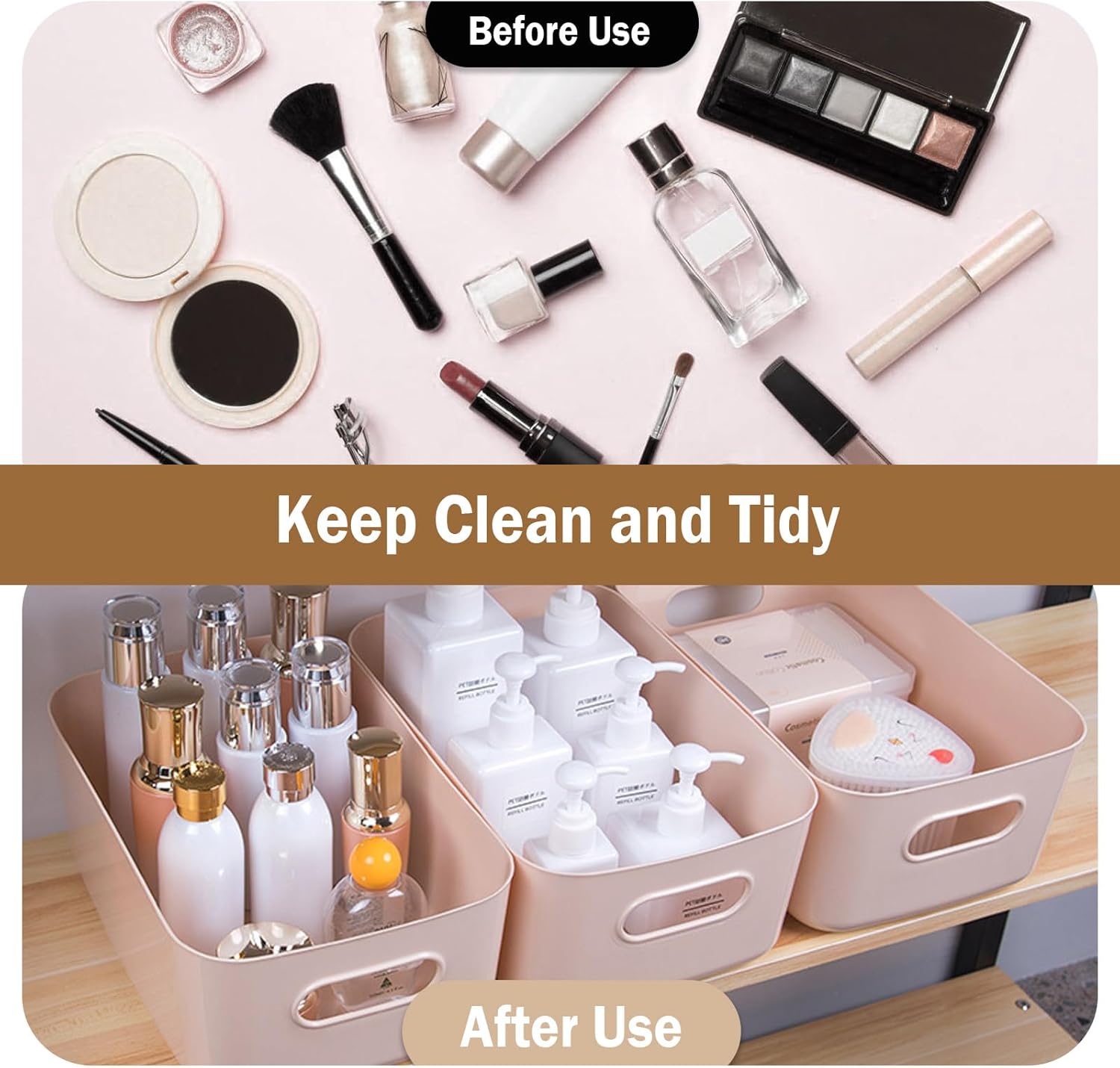 • Wide Application: These storage bins are ideal for use in a variety of settings, including bathrooms, bedrooms, kitchens, living rooms, studies, and offices, providing an efficient way to organize and declutter your space.
