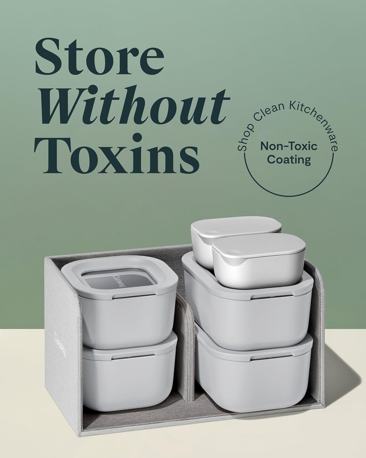 Caraway Mini Food Storage 11pc Set - Glass Storage Containers for Food - Non-Toxic Ceramic-Coated Glass - Air Release Technology - Compact & Stackable Design - Gray