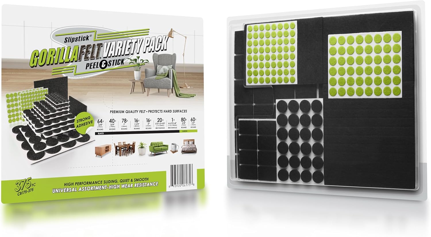 Slipstick Gorilla Felt Furniture Pads (375 Piece Variety Pack) Premium Furniture Pads & Chair Leg Floor Protectors for Hardwood Floors & Hard Surfaces