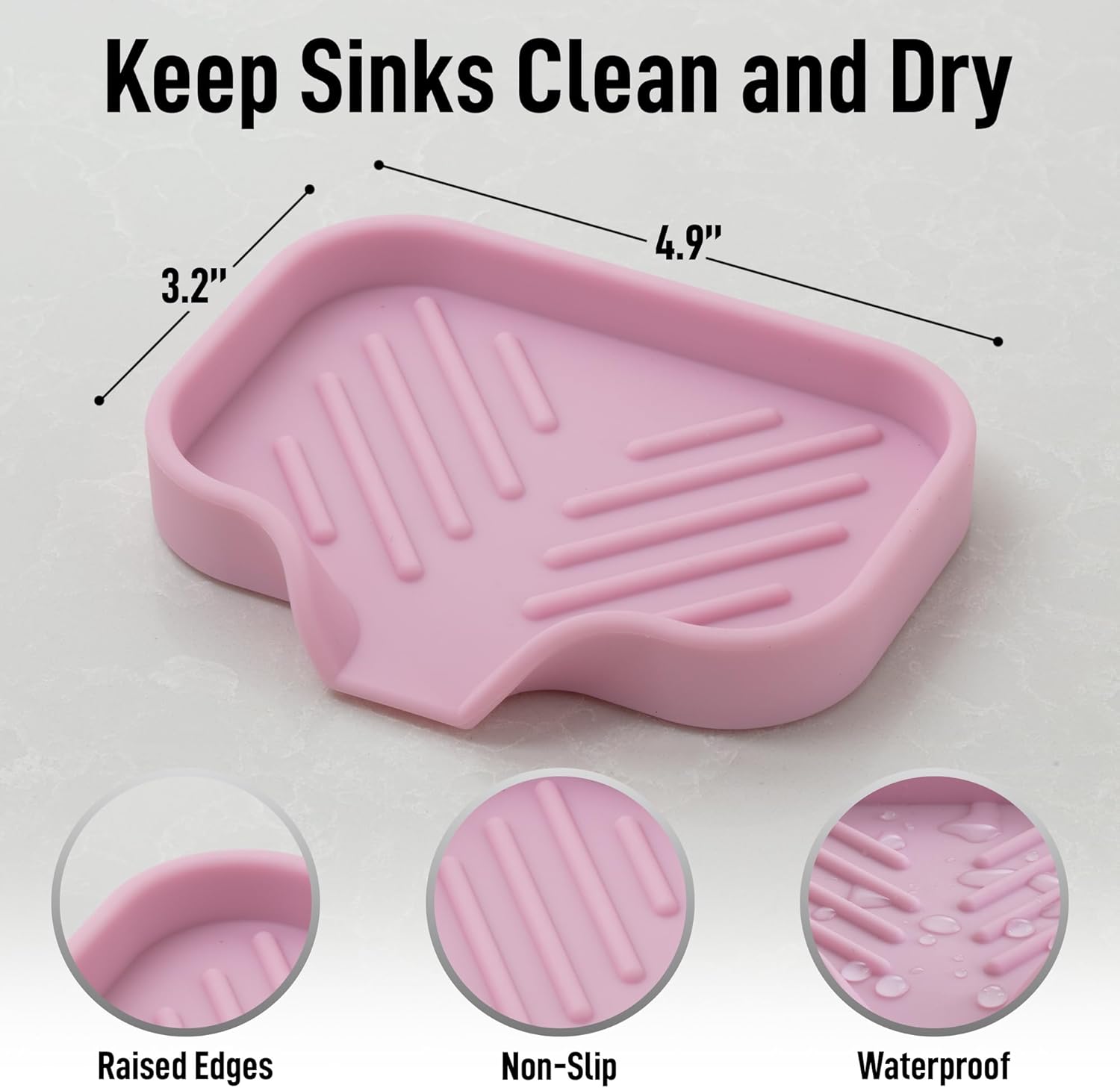 Zulay Kitchen Small Silicone Sponge Holder (4.9x3.3”) – Space-Saving Sink Organizer Tray for Sponge, Soap, Brush & More – Compact Non-Slip Dish for Kitchen & Bathroom (Pink)