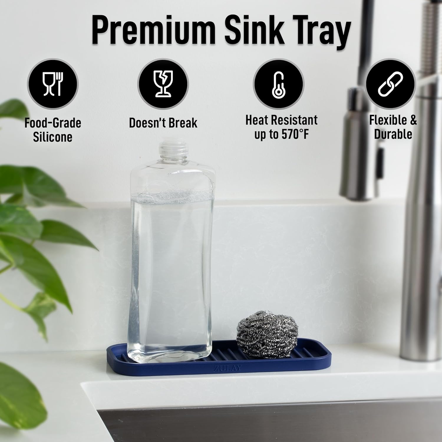 Zulay Kitchen (9x3.5) Silicone Sponge Holder for Kitchen Sink - Flexible Multipurpose Soap Tray - Sink Organizer for Kitchen, Bathroom, Makeup, Trinkets & More (Dark Blue)
