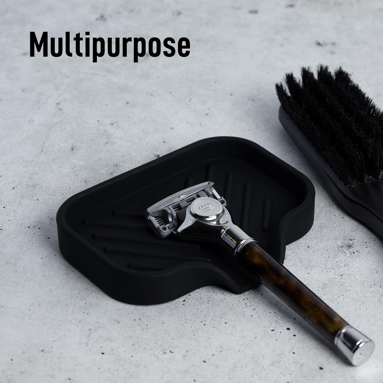 • MESS-FREE COUNTERTOPS: Keep your sink area tidy and free from soap residue with our small silicone sponge holder. Measuring 4.9 x 3.3 inches, this compact tray is ideal for holding a sponge, scrubber, soap bar, or small brush. Its space-saving design is perfect for use in kitchens, bathrooms, laundry rooms, or vanities—great for organizing small essentials like jewelry, makeup, or accessories.