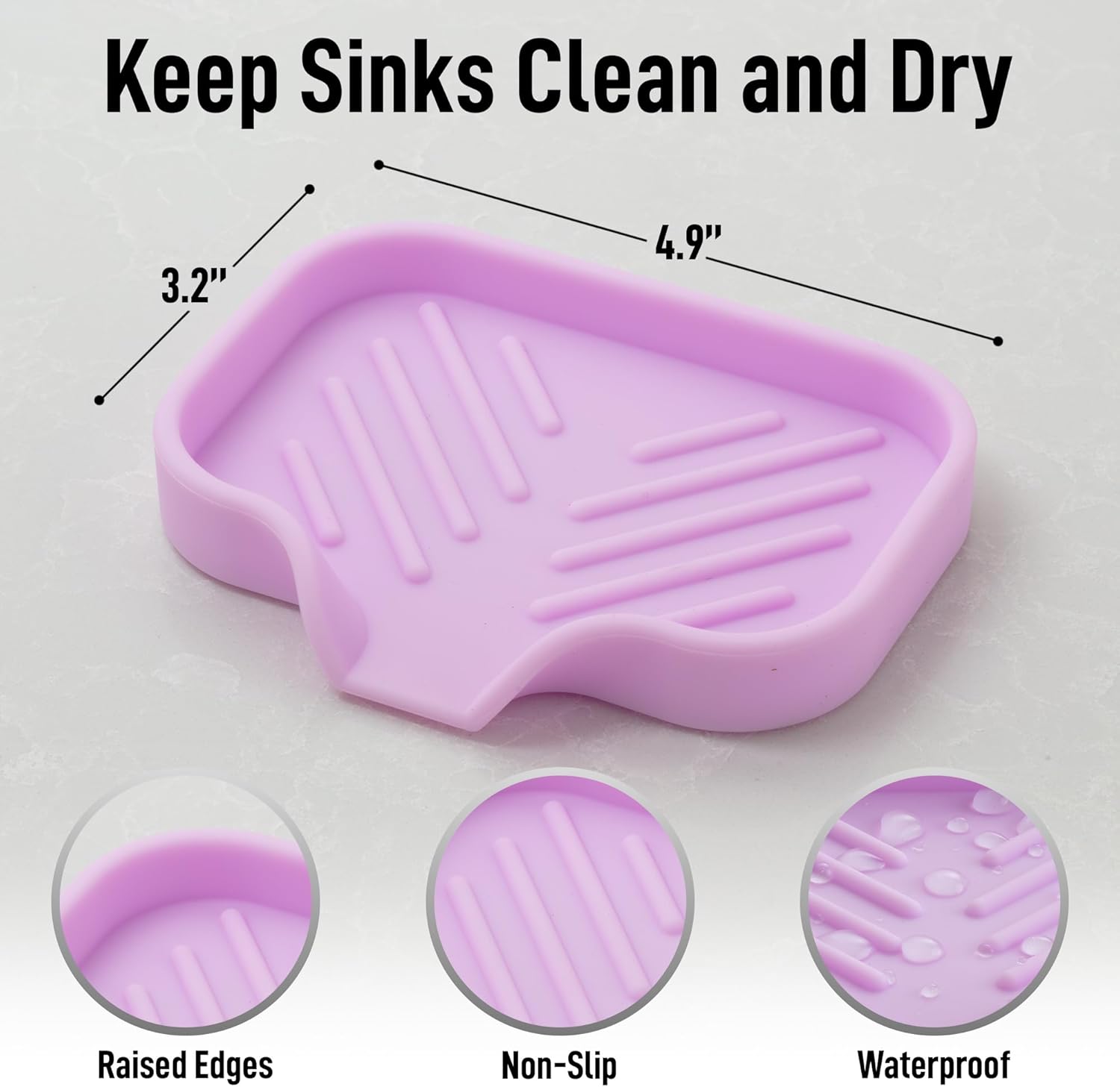 Zulay Small Silicone Sponge Holder (4.9x3.3”) – Space-Saving Sink Organizer Tray for Sponge, Soap, Brush & More – Compact Non-Slip Dish for Kitchen & Bathroom (Lavender)