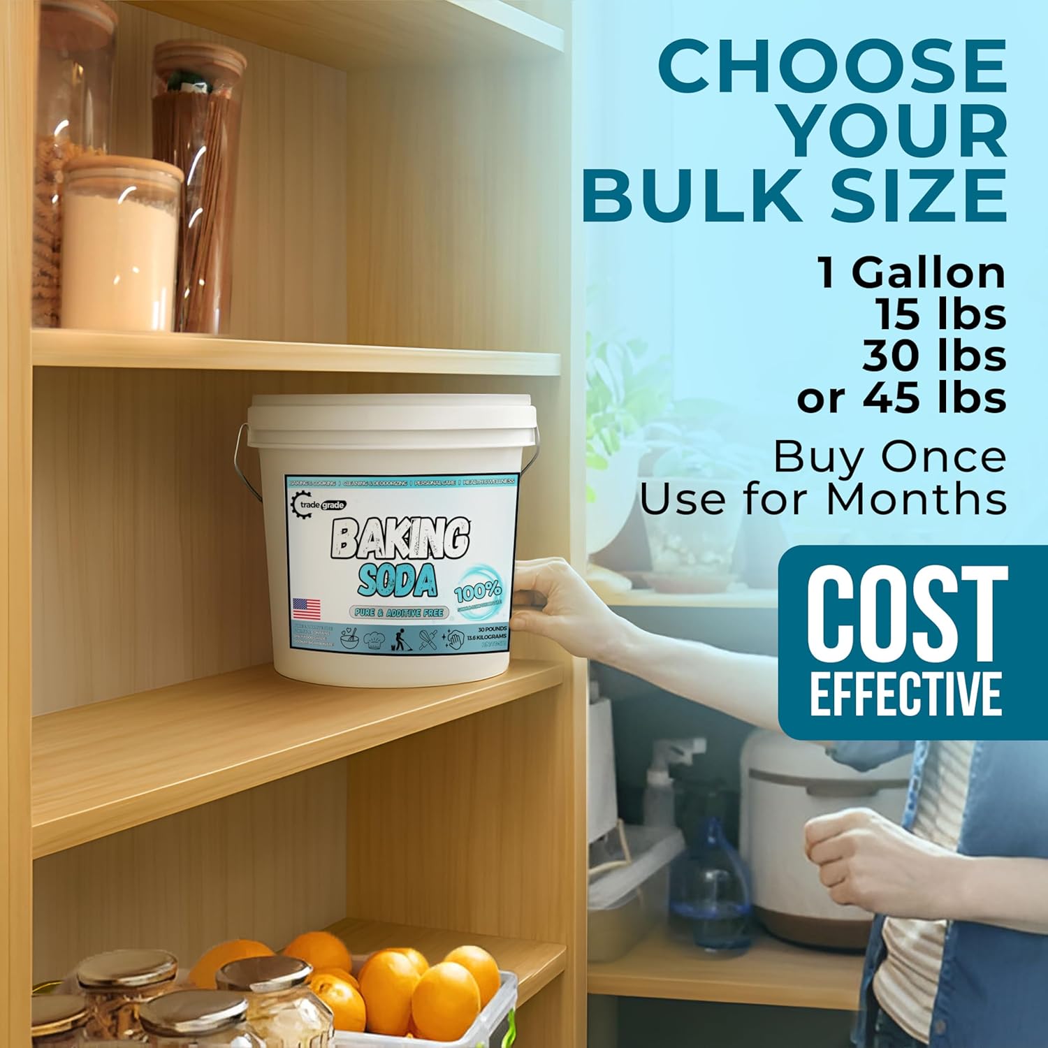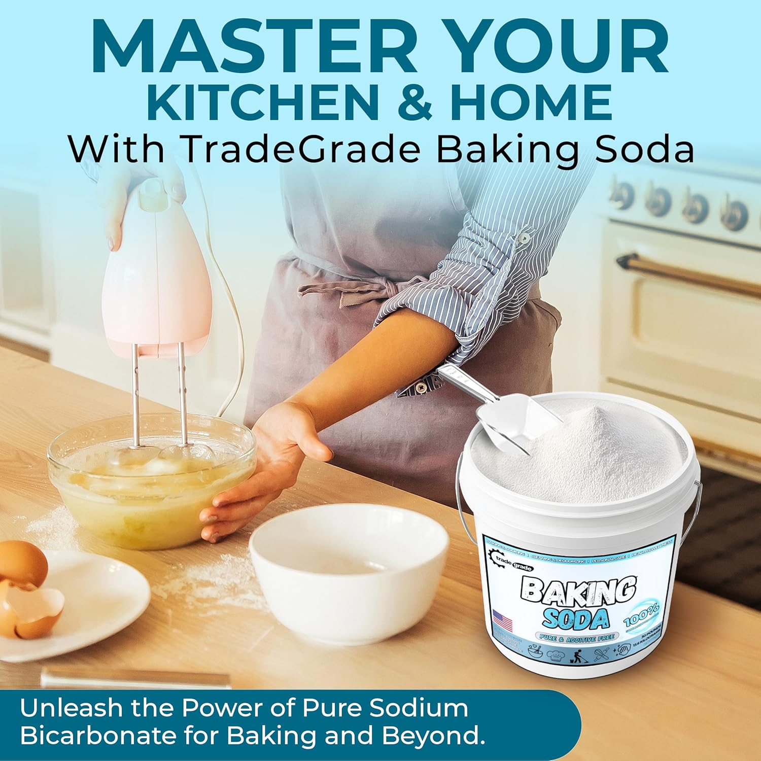TradeGrade Pure Baking Soda Powder – 30 lb Bucket, Sodium Bicarbonate Powder | Premium Food-Grade for Baking, Bread, Cookies & More | Baking Soda for Cleaning, Natural Cleaner & Deodorizer