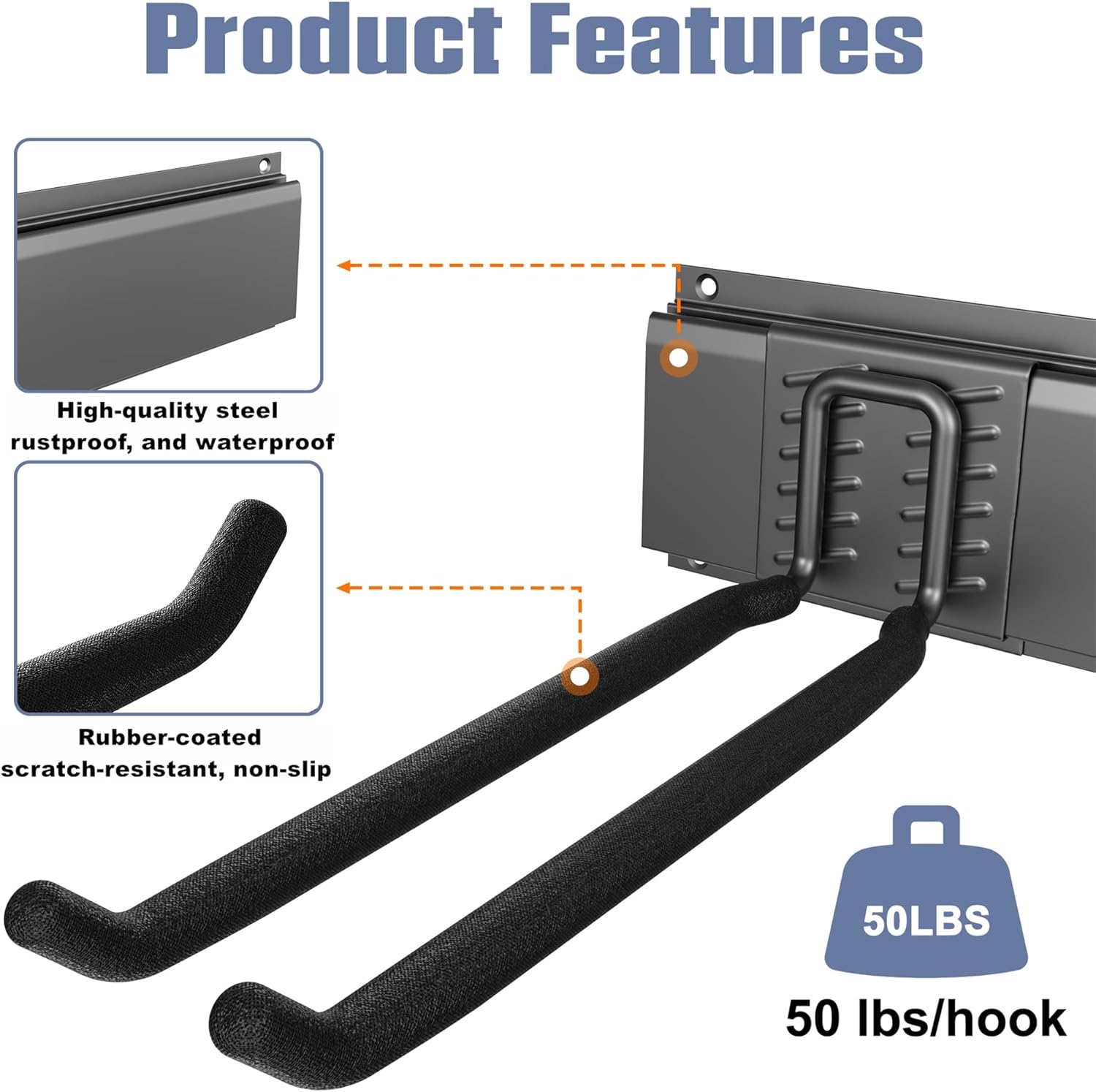 • Sturdy and Reliable Construction: Built from high-quality metal with a powder-coated finish, the durable tracks and hooks support up to 50 lbs per hook. Rubber-coated hooks prevent slipping and scratches
