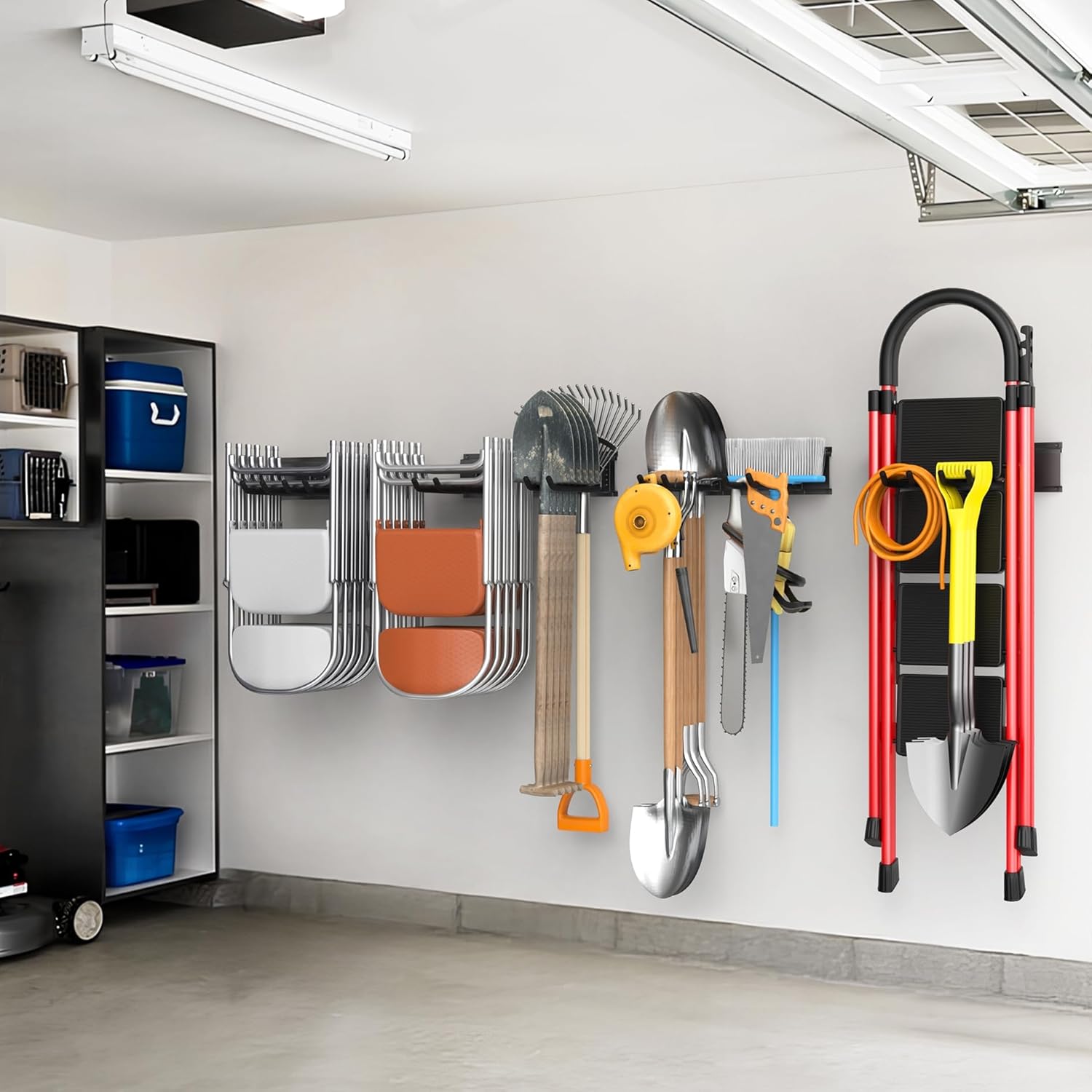 • Maximize Your Garage Space: Keep garden tools, ladders, folding chairs, and more off the floor and neatly stored on the wall. This tool rack helps free up floor space while keeping everything organized and within reach