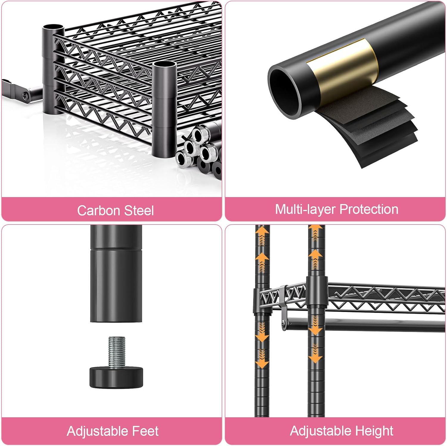 • High Weight Capacity : Built to handle heavy loads, this rack supports up to 1050 lbs when stationary and approximately 300-350 lbs when on wheels, making it ideal for both lightweight and bulky storage