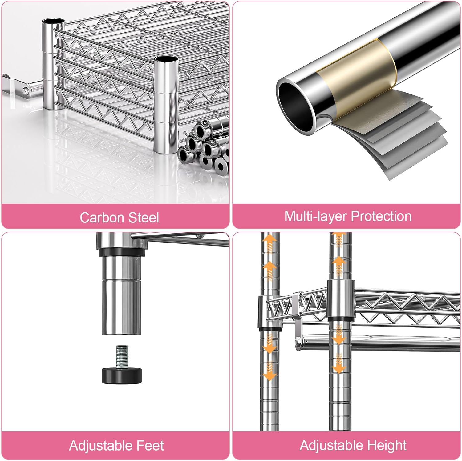 • High Weight Capacity : Built to handle heavy loads, this rack supports up to 1050 lbs when stationary and approximately 300-350 lbs when on wheels, making it ideal for both lightweight and bulky storage