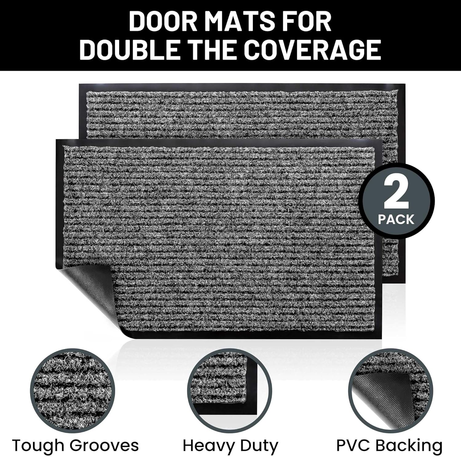 • Includes 2 BATTLESHIP GRAY X-Large Indoor Outdoor Floor Mats: Enjoy two amazing heavy duty high quality ribbed polyester door mats (Larger 48" x 36") that will be perfect welcome for the everyday home. Amazing value 2-Pack.