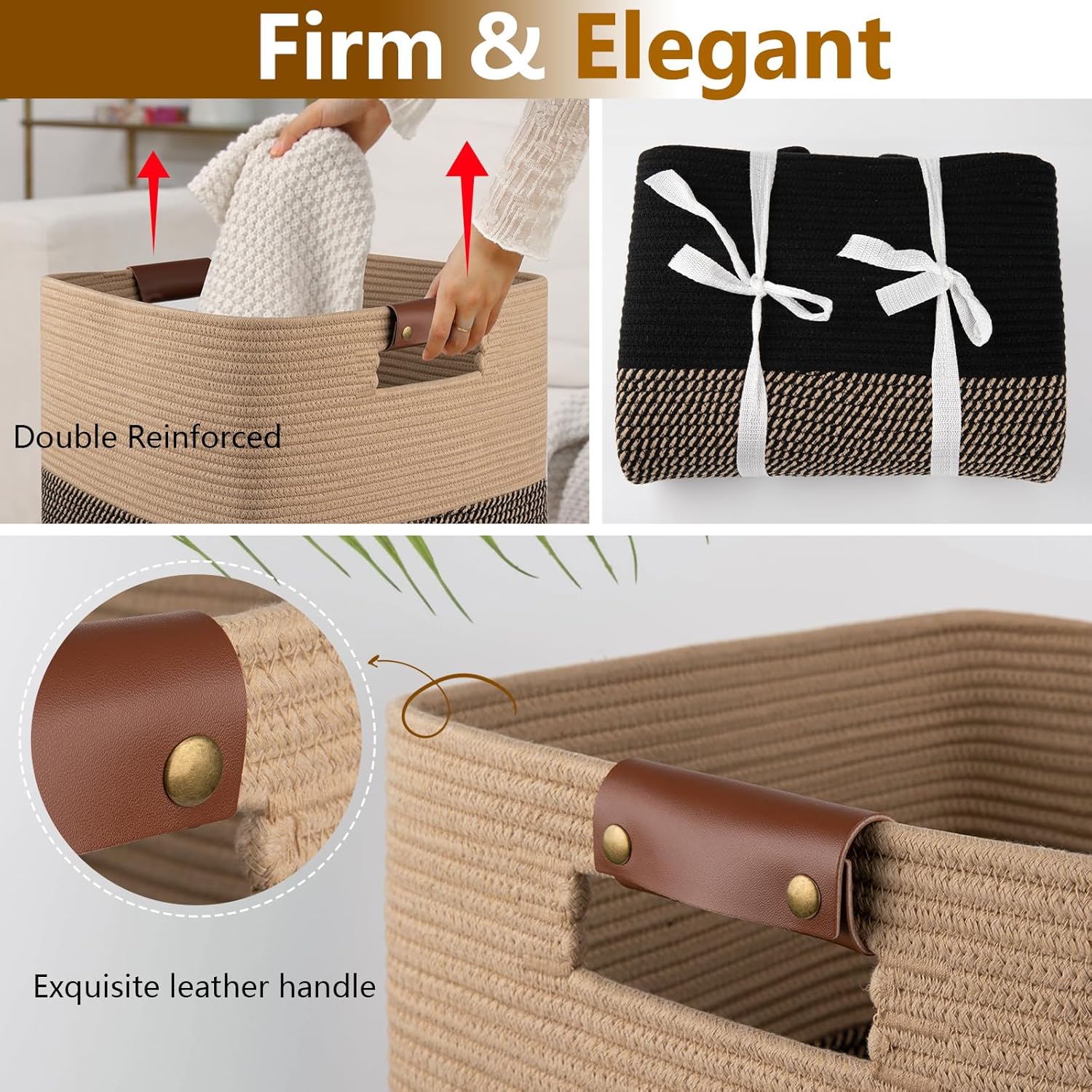 • Natural Handmade & Unique Design: The special hand-woven design makes the style of our blanket basket simpler, the classic color blend seamless with any room decor. The elegant leather handles not only take care of your hands but also add a distinctive highlight to our large baskets