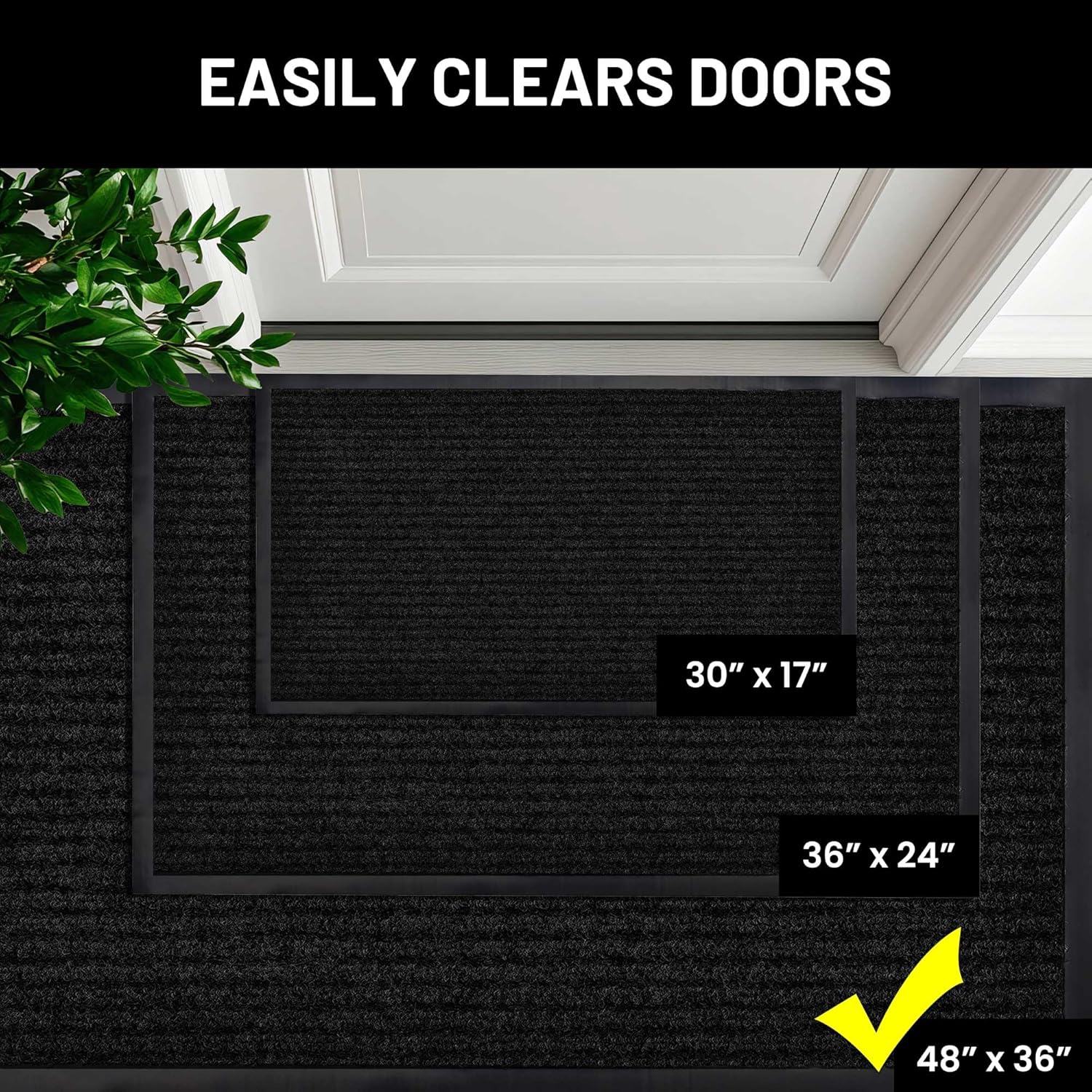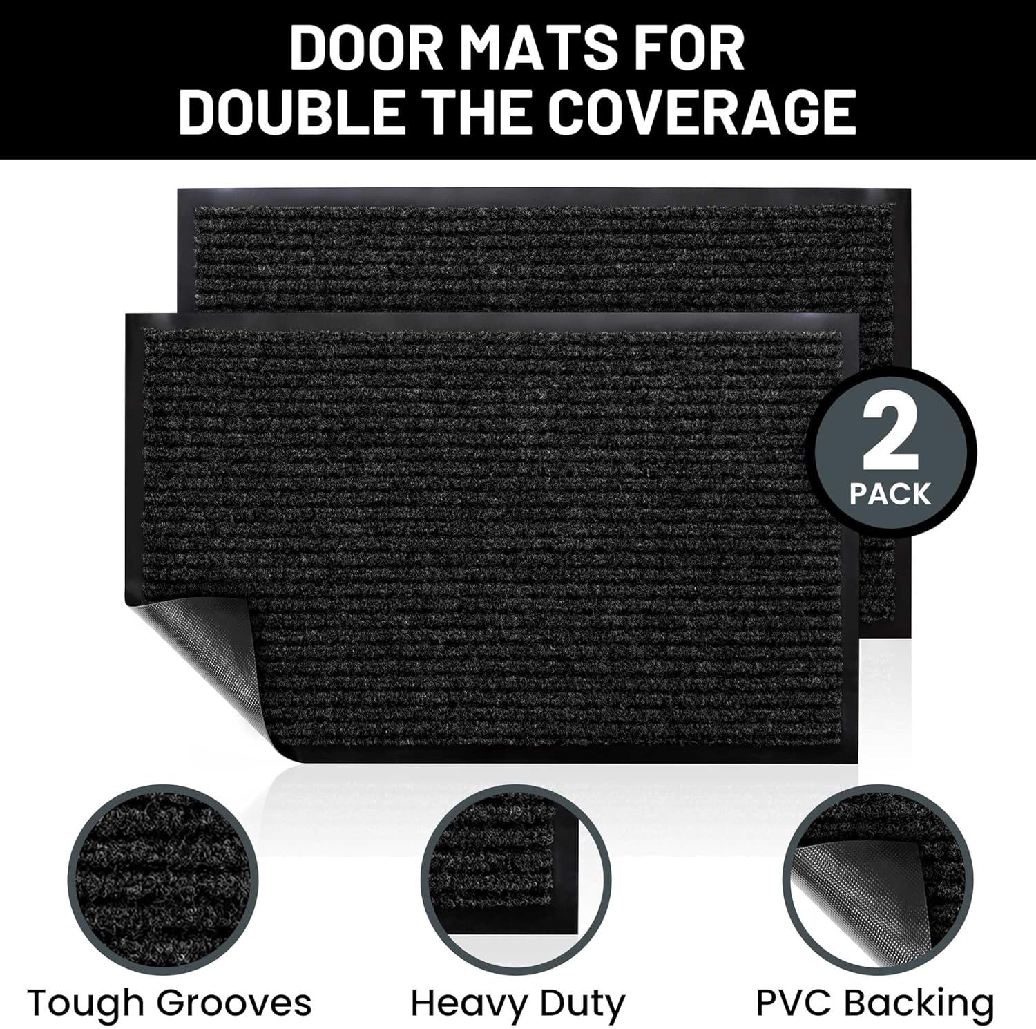 • Includes 2 BLACK X-Large Indoor Outdoor Floor Mats: Enjoy two amazing heavy duty high quality ribbed polyester door mats (Larger 48" x 36") that will be perfect welcome for the everyday home. Amazing value 2-Pack.