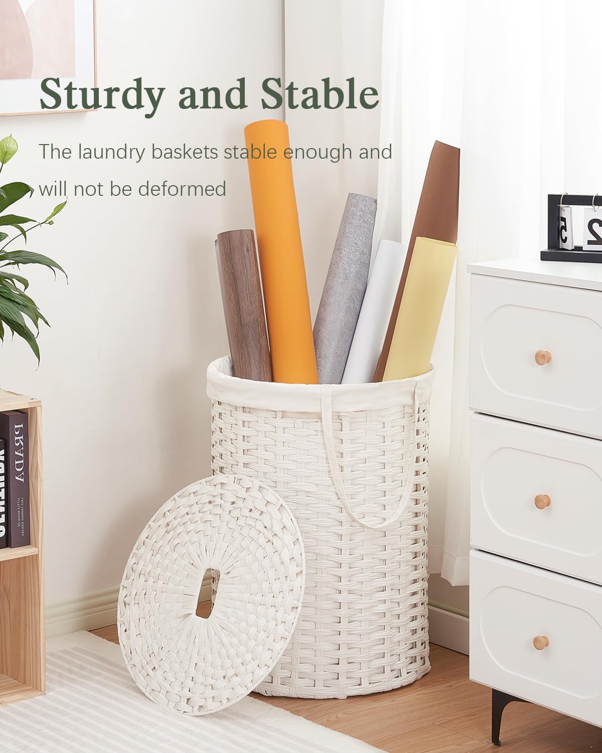 • Simple and Stylish: The wicker storage basket is hand-woven from synthetic rattan material, and the circular appearance of the woven laundry hamper with lid and the free-standing lining bag make it easier to store and transport dirty clothes