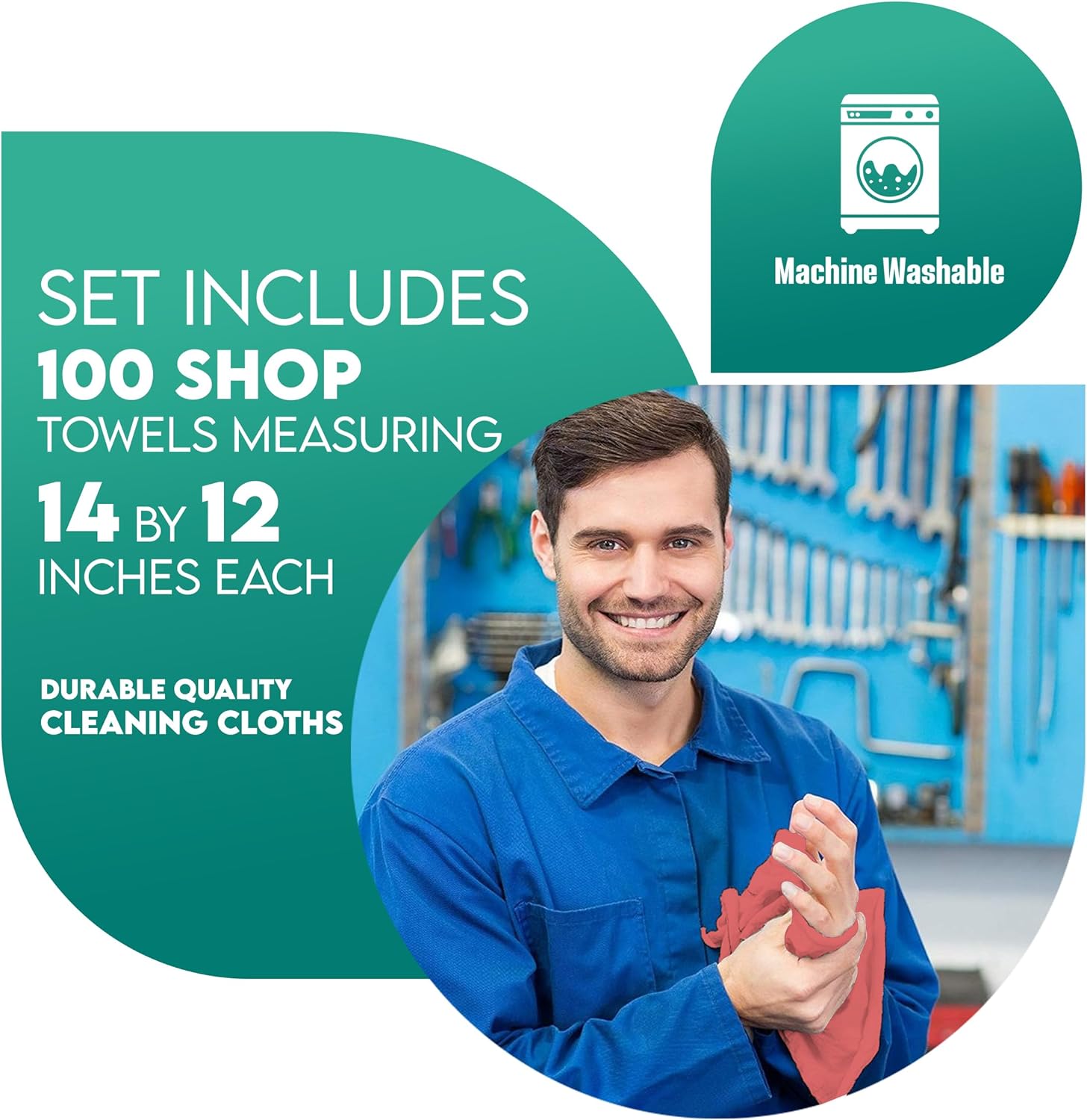 • Effortless Cleaning Power — Zuperia Shop towels include a Pack of 150 cotton shop towels measuring 14" x 12" Inches. They can quickly wipe away dirt, stains, and spills, effortlessly absorbing liquids, oils, and grease for efficient cleaning.