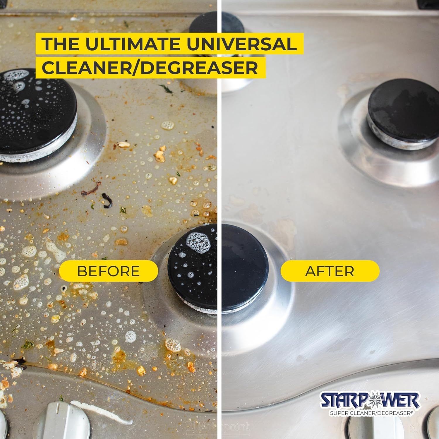 • ULTIMATE MULTI-PURPOSE MULTI-SURFACE POWER: Simplify your routine with STARPOWER, the ultimate universal cleaner degreaser that replaces multiple cleaning supplies, tackling grease, dirt, stains, oil, and grime throughout your home or workplace
