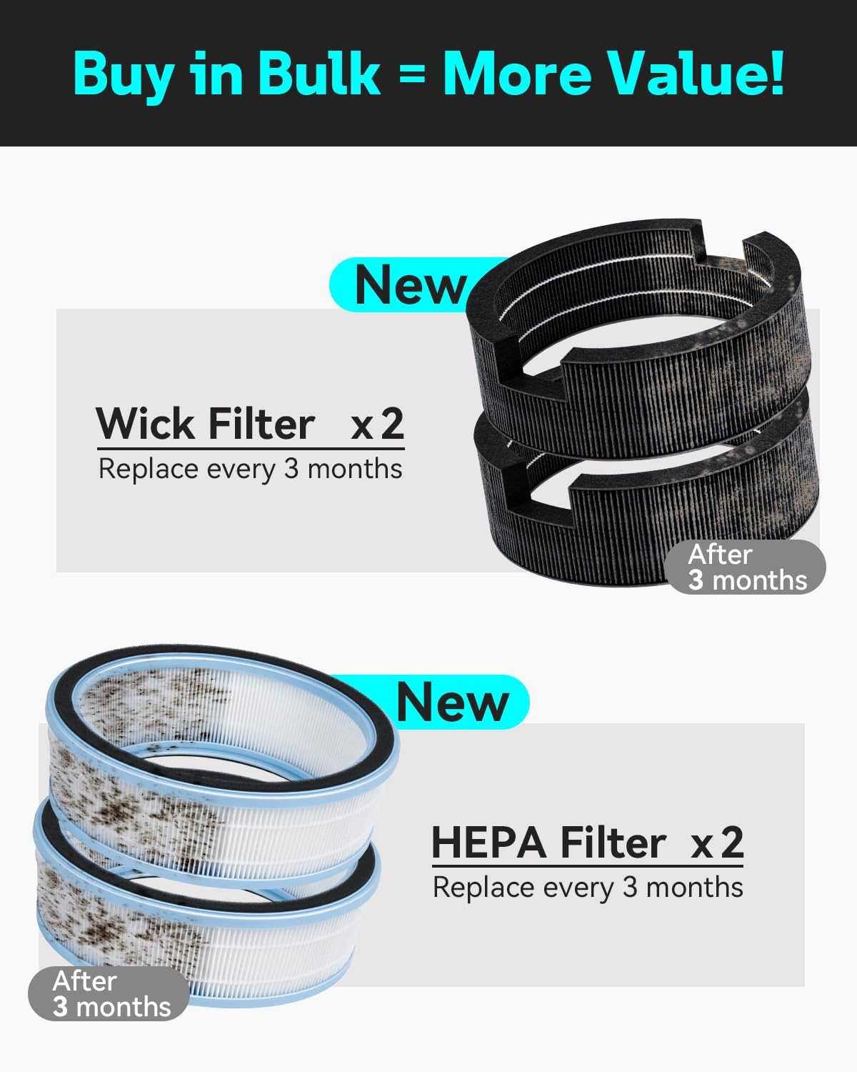 • COST-EFFECTIVE BUNDLE: Each set includes 2 HEPA filters + 2 Wick filters. Buying in bulk means save money