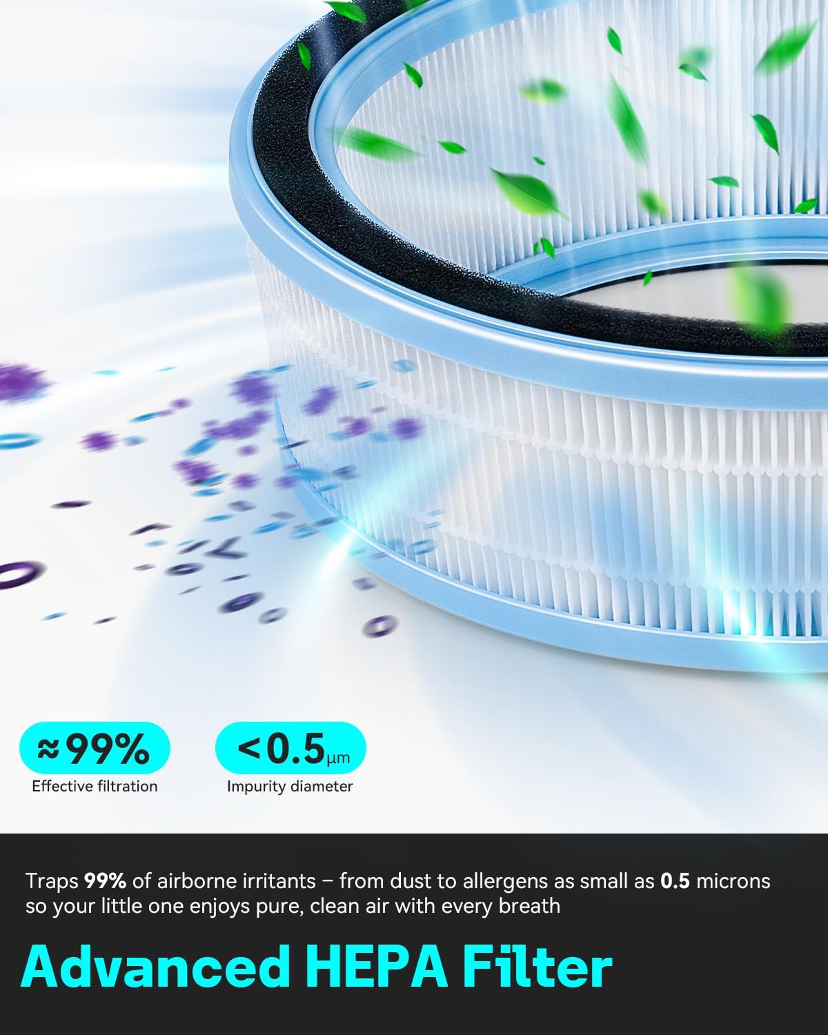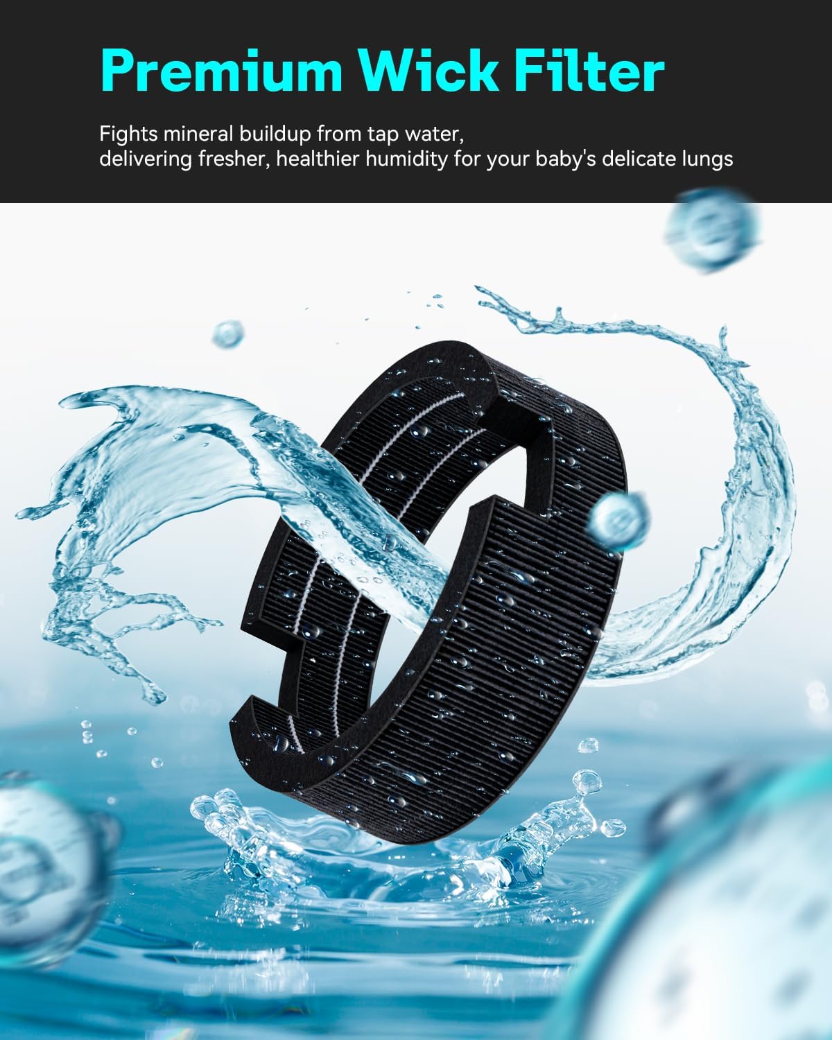 • ENHANCED AIR & WATER FILTRATION: The HEPA filter and the wick filter together enhance air quality and maintain a healthy humidity level—ideal for bedrooms, nurseries, and baby rooms