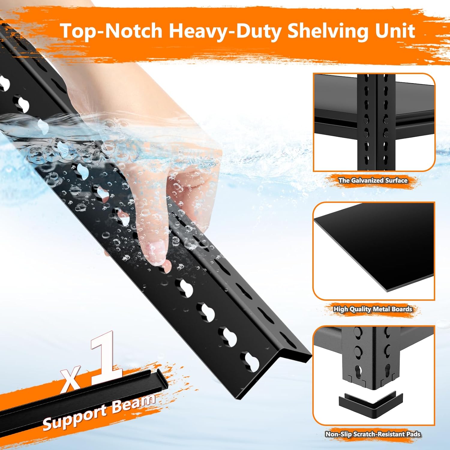 - 3700LBS Heavy Duty Storage Shelves: ROOMTEC heavy duty garage shelving unit is constructed from thickened heavy steel columns, each layer can withstand a weight of 740 pounds, with a total bearing capacity of 3700 pounds. Whether you're storing tools, equipment, or household supplies, these shelves is a reliable storage solution. The powder coat finish provides a smooth and attractive appearance but also resists water, rust, or corrosion, ensuring durability and longevity