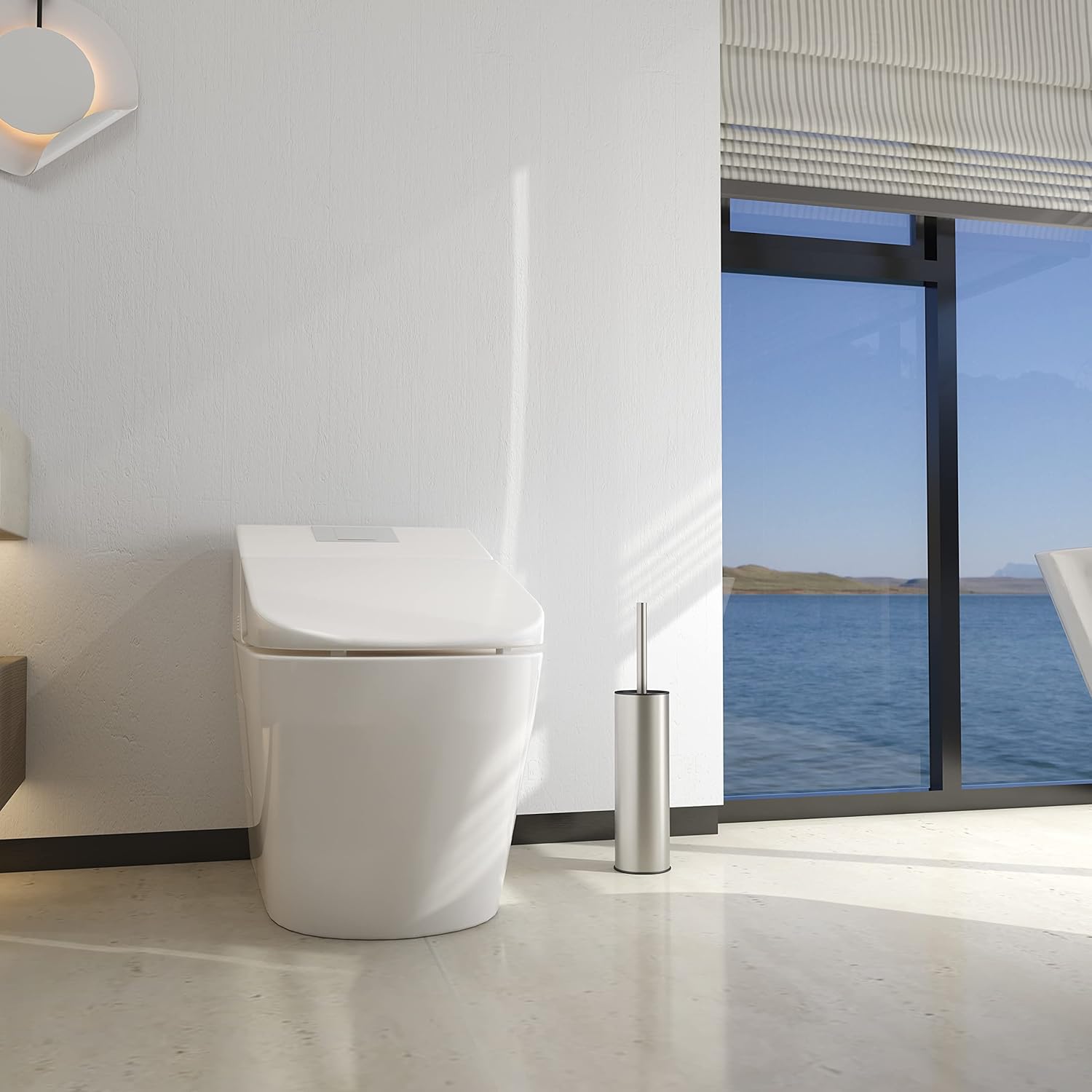 • Splash-proof design:BGL brushed nickel toilet brush set has a cover at the handle to prevent the sewage from splashing on the hand when cleaning the toilet. The cover baffle design protects your hands from stains and block the spread of odors, prevents scratching the toilet when cleaning.