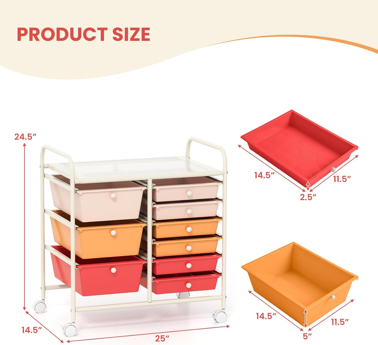 • Rugged Metal Frame: The utility cart is a reliable addition to your living space. Heavy-duty baking painted metal frame means better durability, higher sturdiness and stability. Together with lightweight and durable PP drawers, longer life span is well ensured.