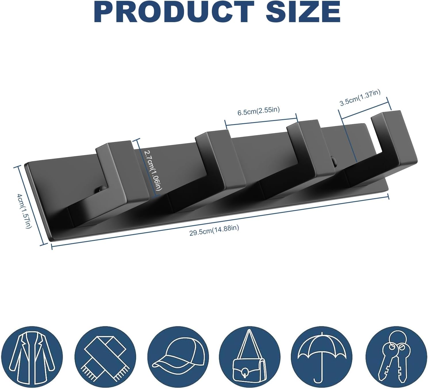 PMMASTO Coat Rack Wall Mount, Coat Hooks Wall Hooks for Hanging, Stainless Steel Coat Hanger Towel Hooks for Bathrooms, Coat Rack Hat Rack (Black 4 Hooks, 2 Pack)