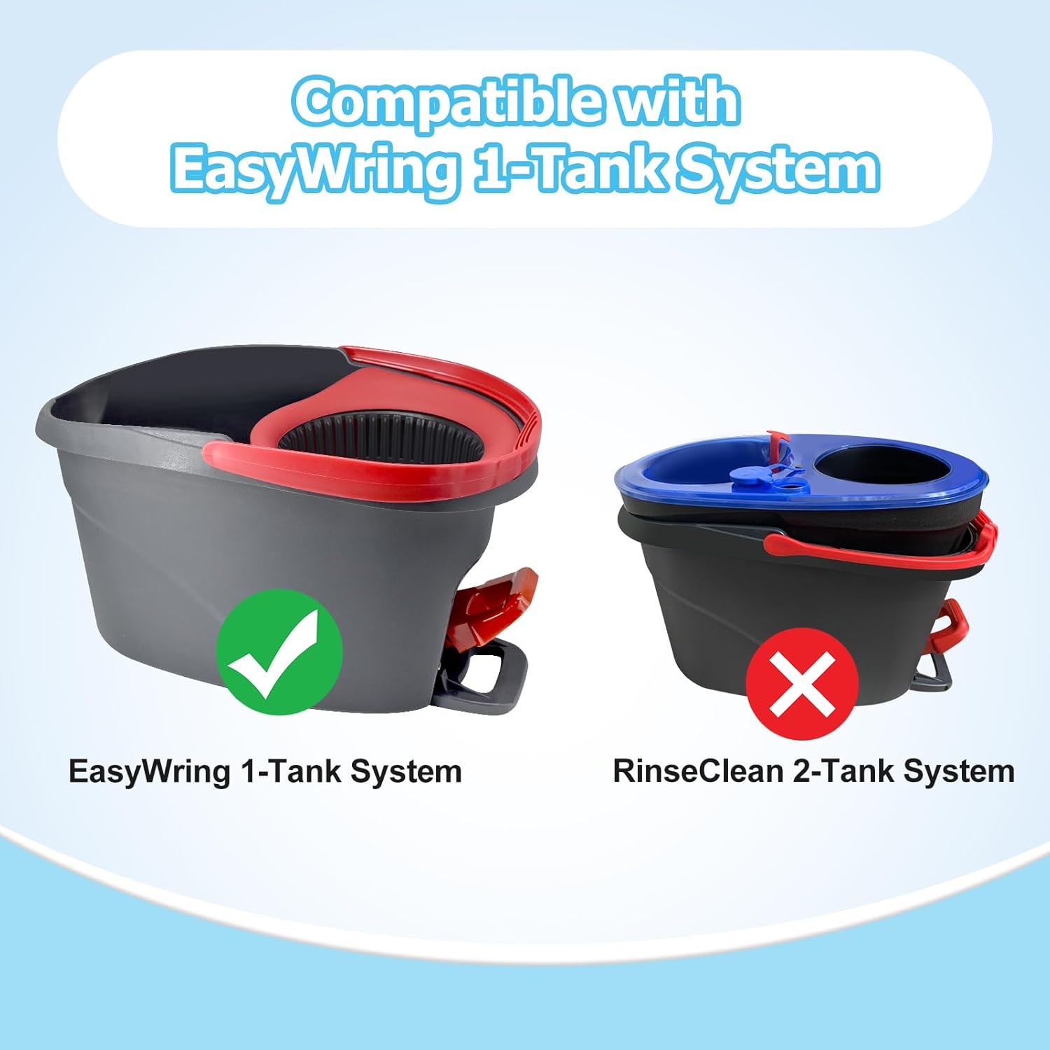 - ใApplicable Modelใ:Mop replace heads,spin mop handle,scrubber mop head and mop base combo set ONLY compatible with O-cedar EasyWring 1-Tank Spin Mop System,๐ซ๐๐๐ for RinseClean 2-Tank Spin Mop and Bucket.Please check your mop bucket model before ordering.Package include:2 pack thickened microfiber mop heads replacements,30-58in adjustable sturdy stainless steel mop stick(4 section),1 scrub brush head,and 1 triangle mop base.(No Bucket)
