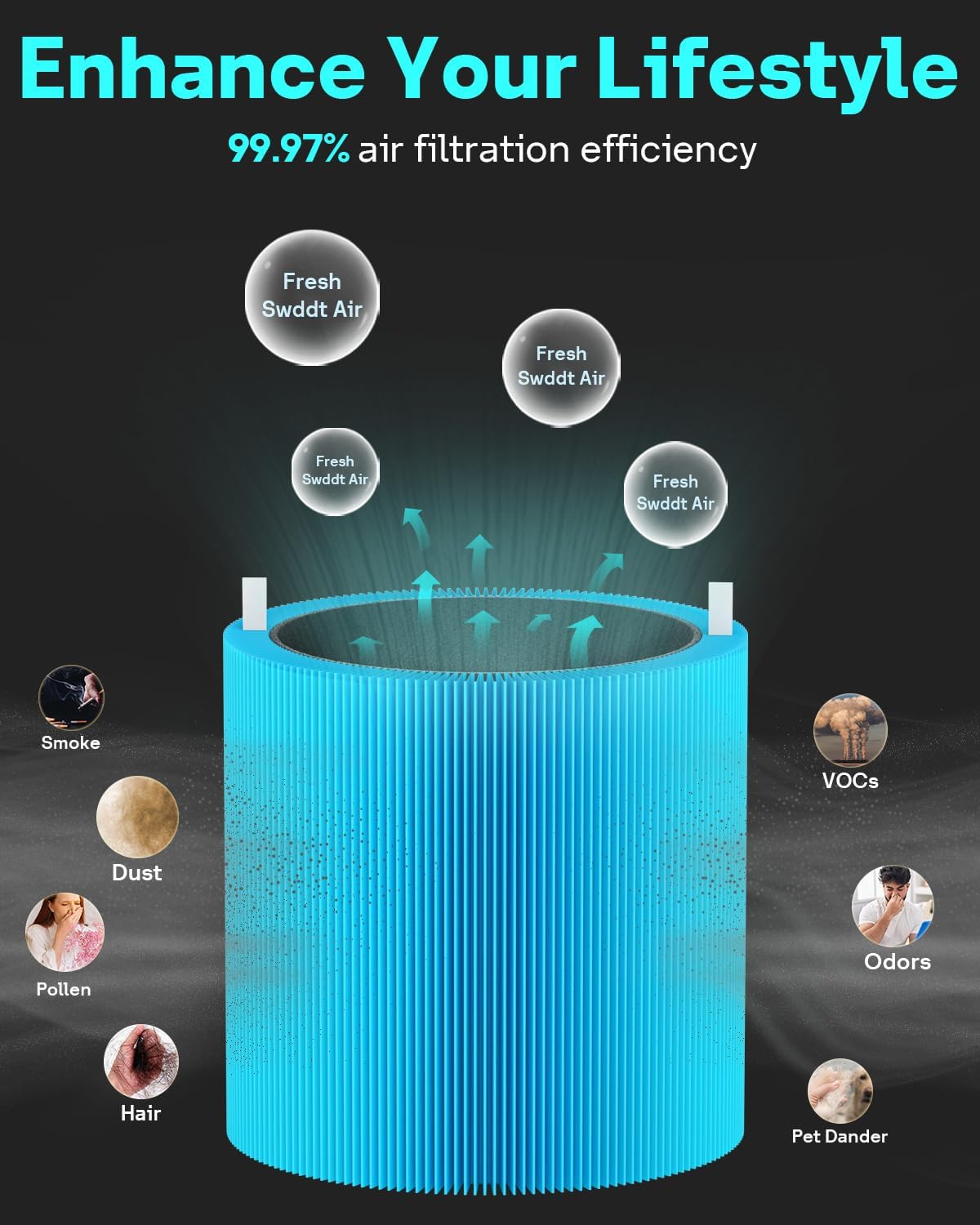 • 【SUPERIOR QUALITY】: Blue Pure 311i Max AllergenBlock Replacement Filter for Blue Pure 311i Max Air Purifier , effectively capturing a remarkable 99.97% of particles as small as 0.1 microns, and cleans pet dander, pollen, and dust. The activated carbon filter efficiently tackles household odors and harmful gases, safeguards you from household odors