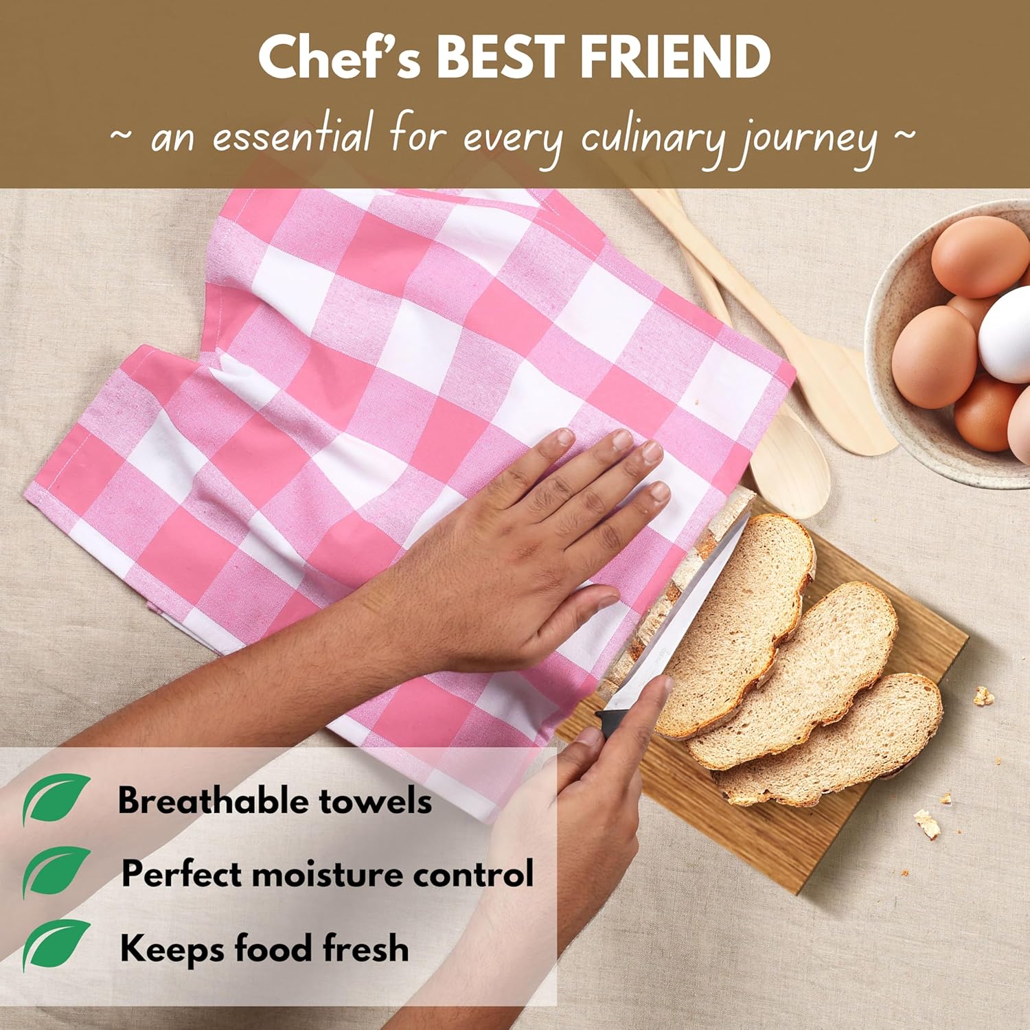 Native Fab Pink Checked Kitchen Towel 16"x26" - 12 Pack Buffalo Plaid Cotton Dish Towels - Absorbent Dishcloth Set, Soft Reusable Towels with Hanging Loop - Pink White