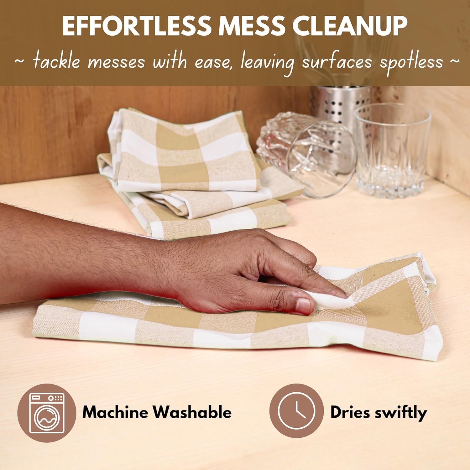 Native Fab 12 Pack Buffalo Check Kitchen Towel 16"x26" - Cotton Dish Towels Washable - Absorbent Tea Towels, Soft Hand Towel with Hanging Loop, Dish Cloth Set - Beige White