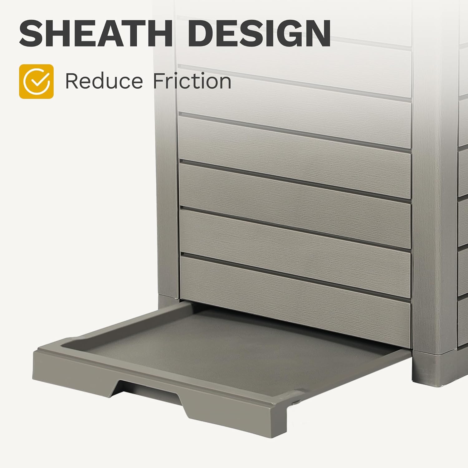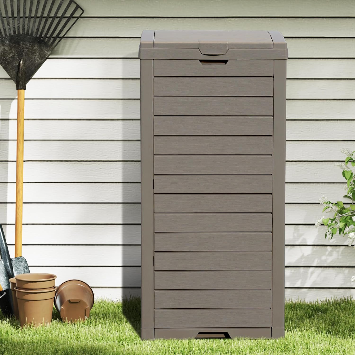 DWVO 38 Gallon Large Outdoor Trash Can, Waterproof Resin Hideaway Garbage Bin with Lid and Drip Tray, Outside Trash Bin for Porch, Backyard, Deck, Patio, Poolside, Easy to Clean, Taupe