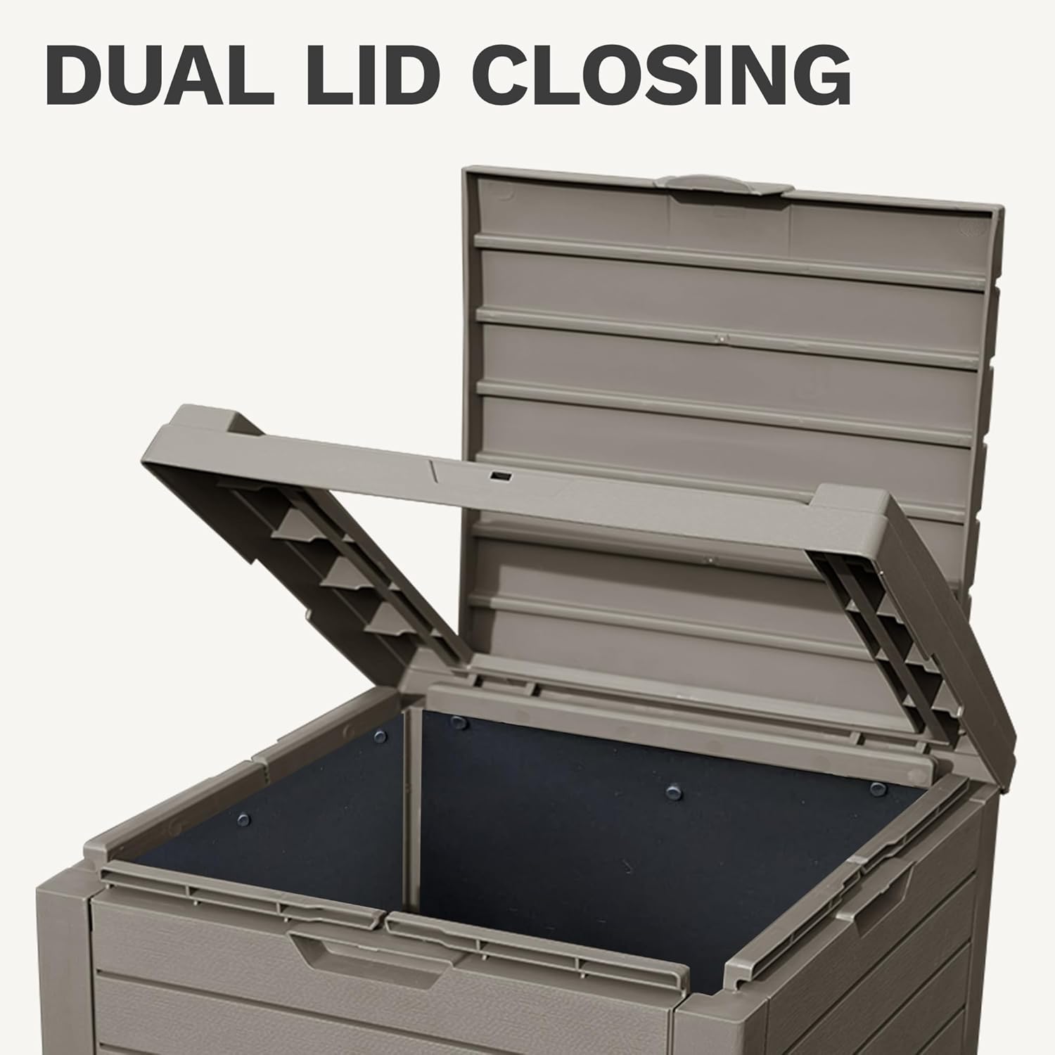 • Dual Lid Design: Our waterproof resin garbage can features a double lid that discreetly hides unsightly garbage bags; The outer lid has a handy clasp for easy one-handed operation, while the inner lid securely holds the garbage bag in place