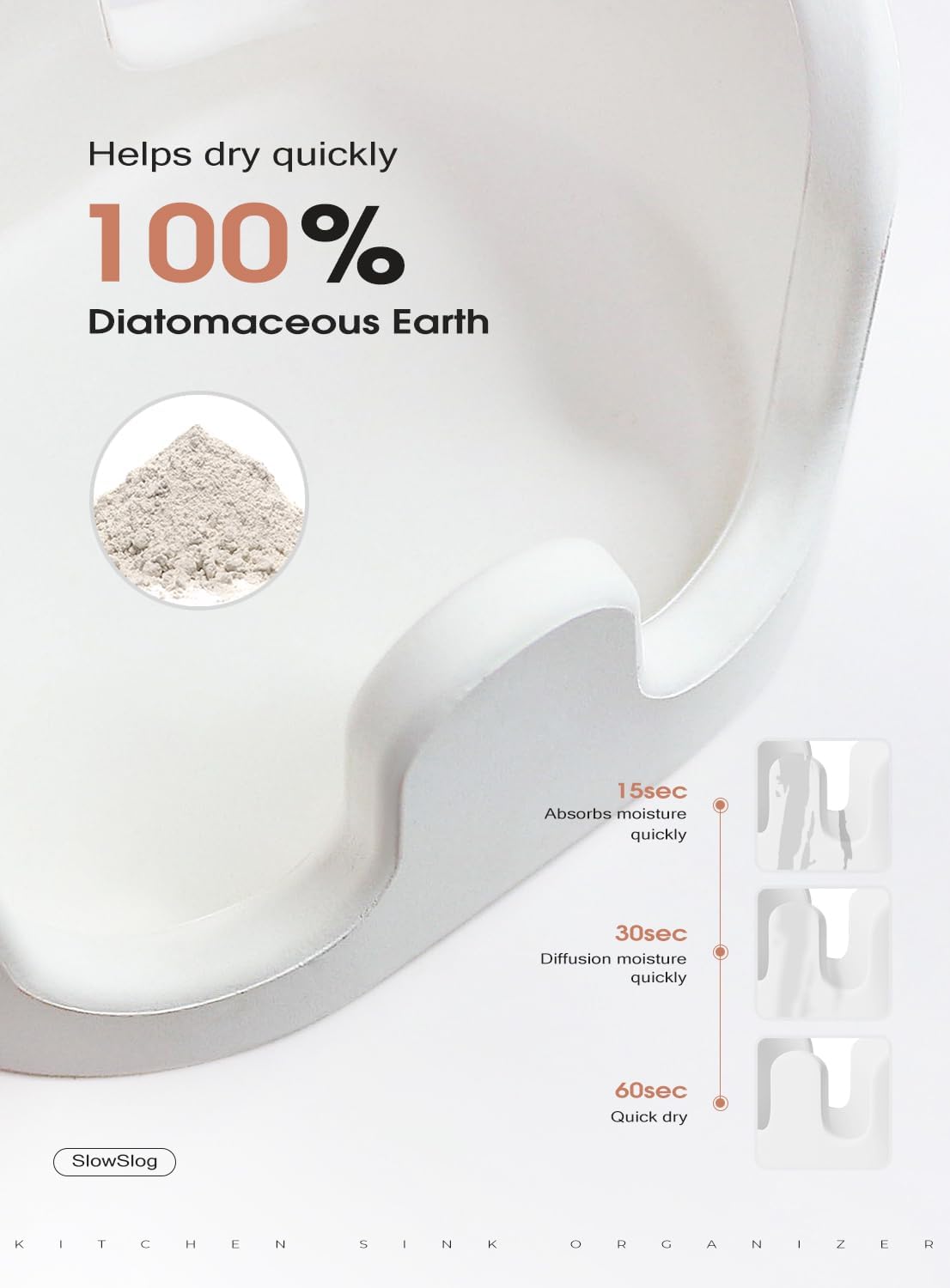• Stylish and Practical: Combining functionality with durability, this diatomite sponge stand is perfect for modern kitchens. Its quick-dry and absorbent stone design is versatile, suitable for sponges and dishwashing brushes